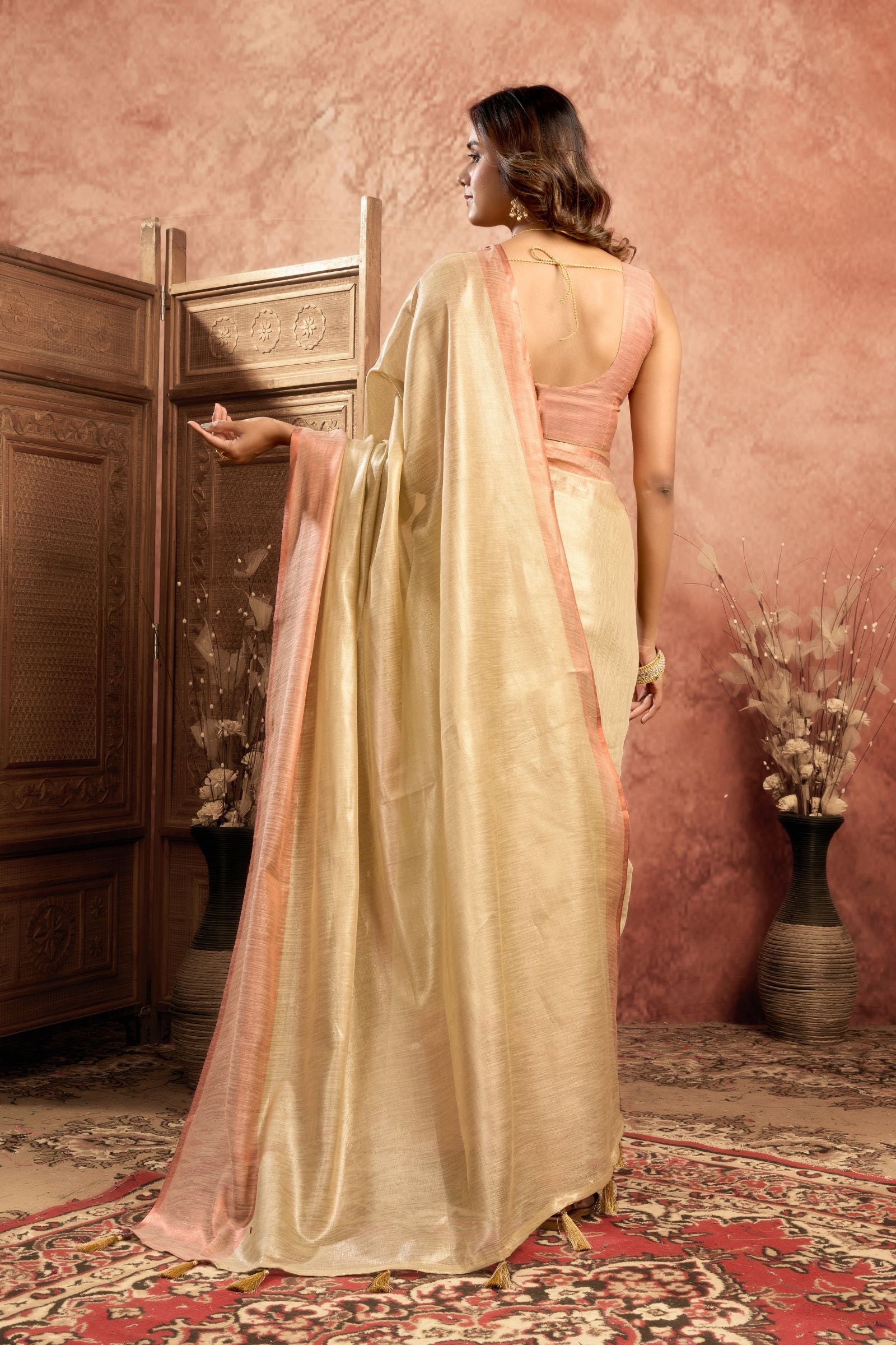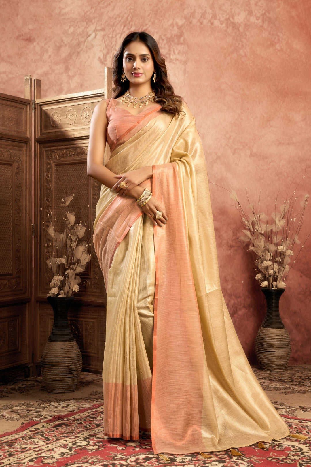 Gracefully woven for timeless elegance, this Ready to Wear Soft Beige Mul Tissue Silk Saree is a celebration of subtle shimmer and refined craftsmanship. Perfect for weddings, festive gatherings, poojas, and elegant evening occasions, this saree strikes the perfect balance between tradition and contemporary style.