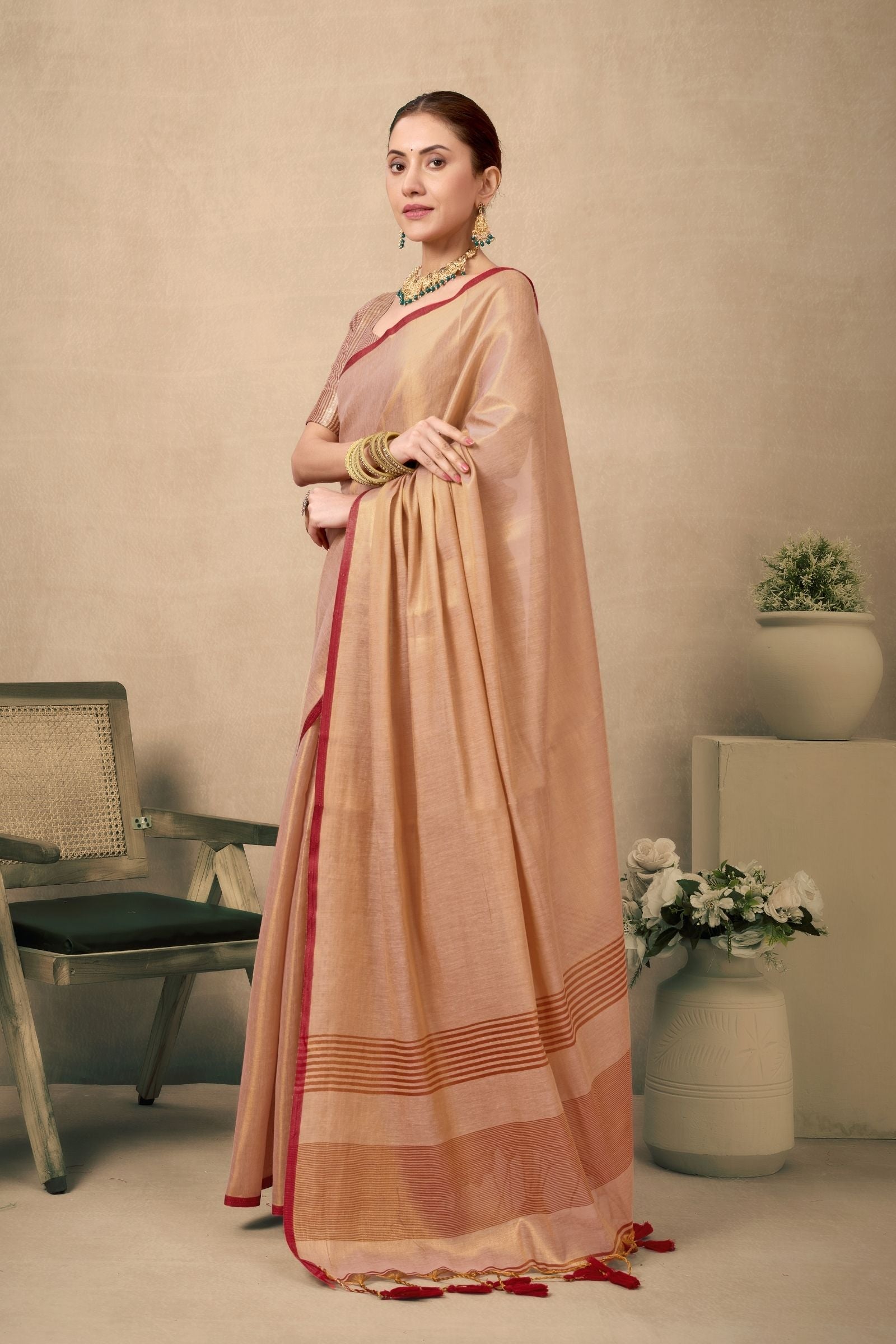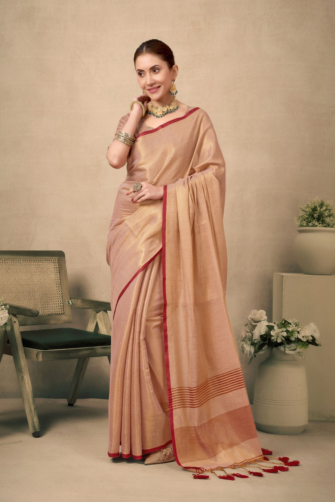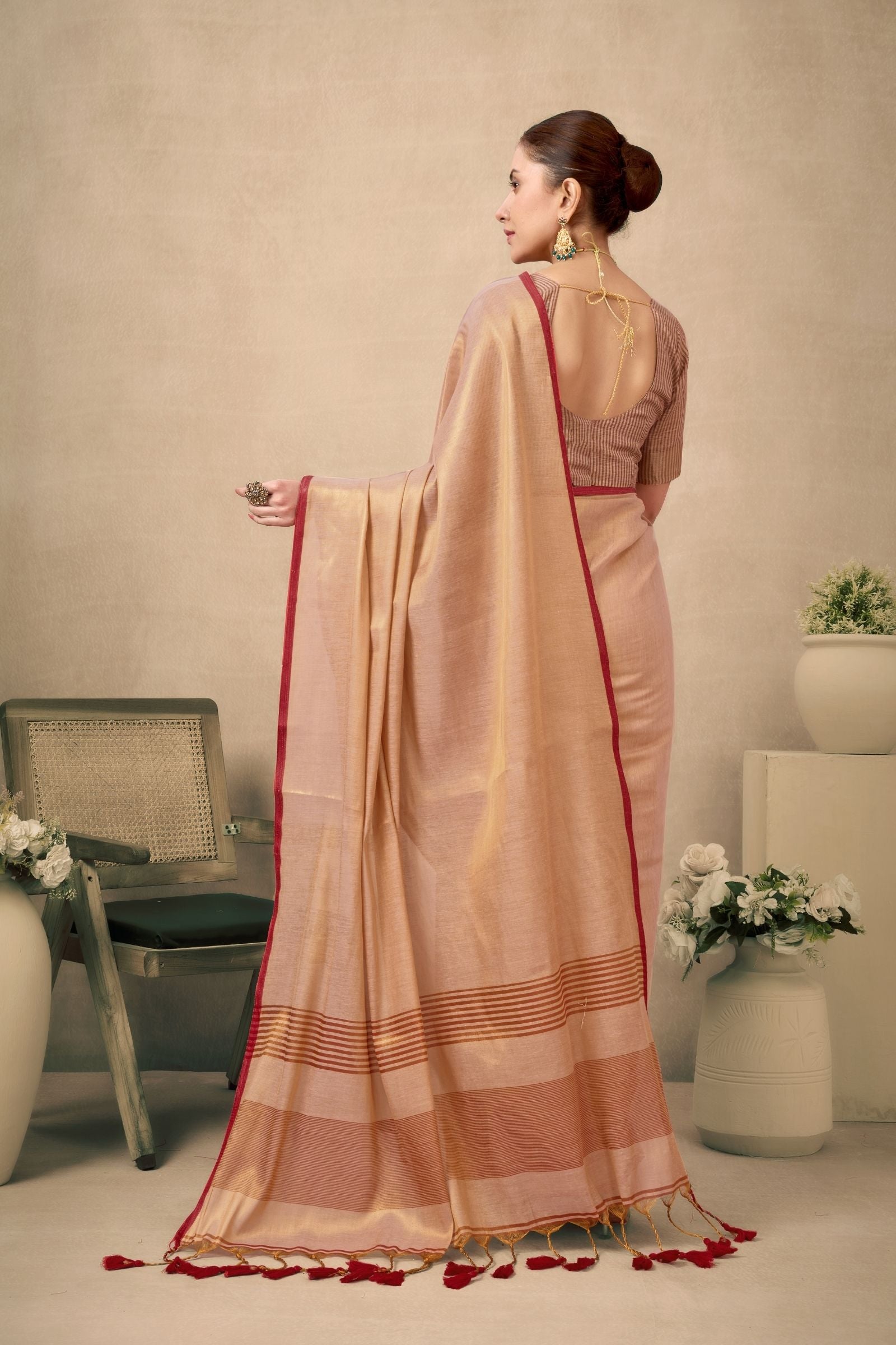 Blush Gold Mist | Ready to Wear Mul Tissue Saree