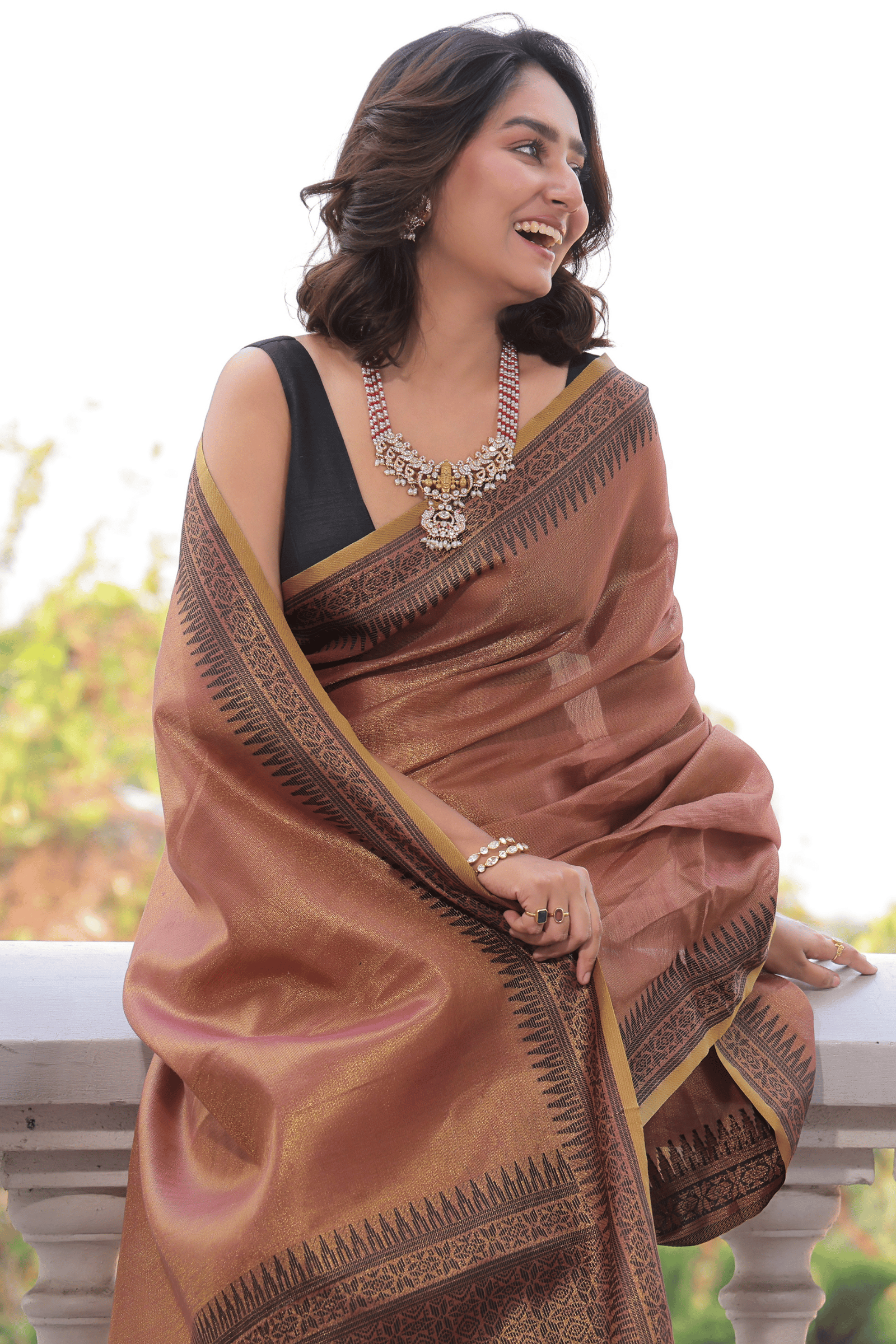 Mocha Heritage | Ready to Wear Tissue Silk Saree