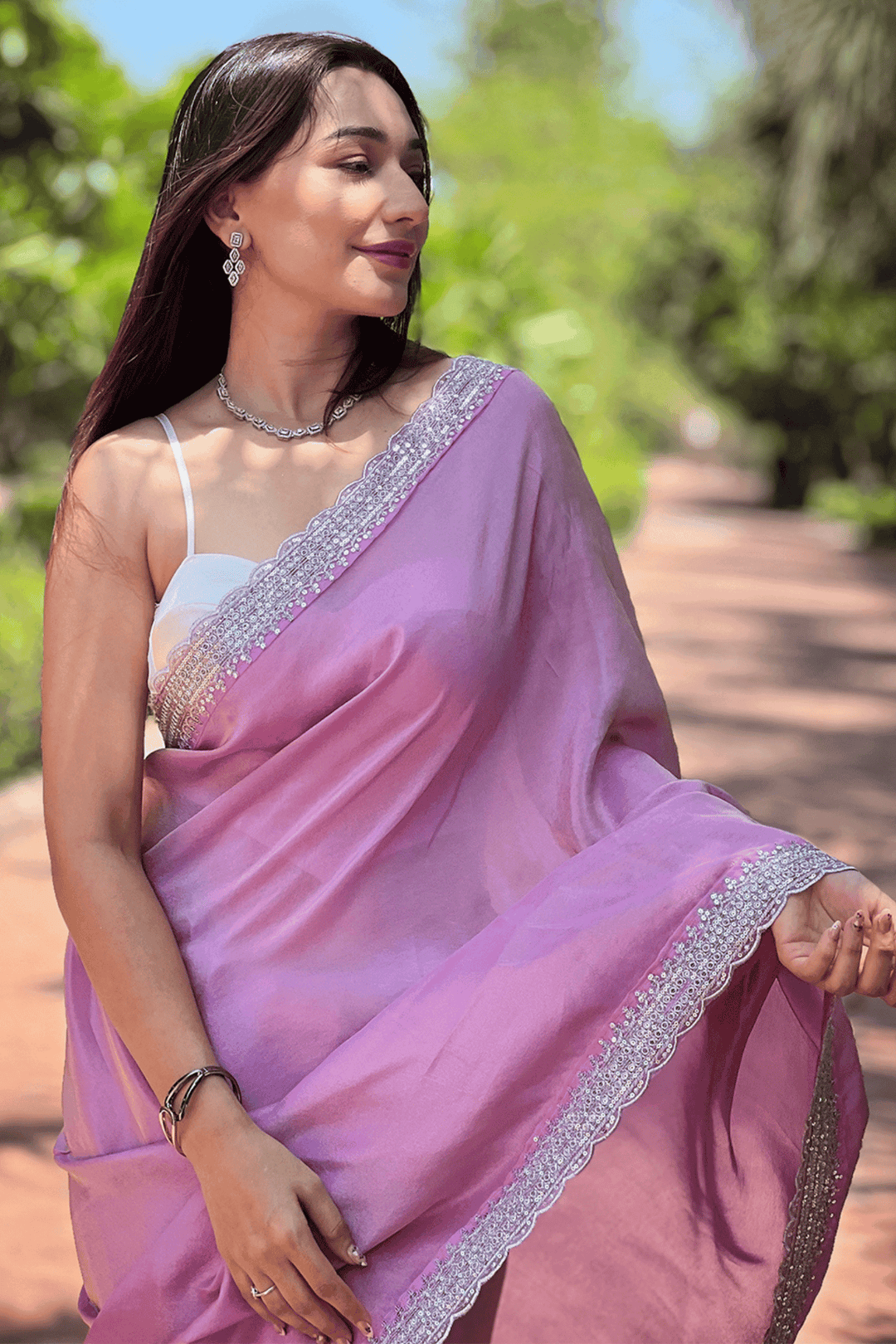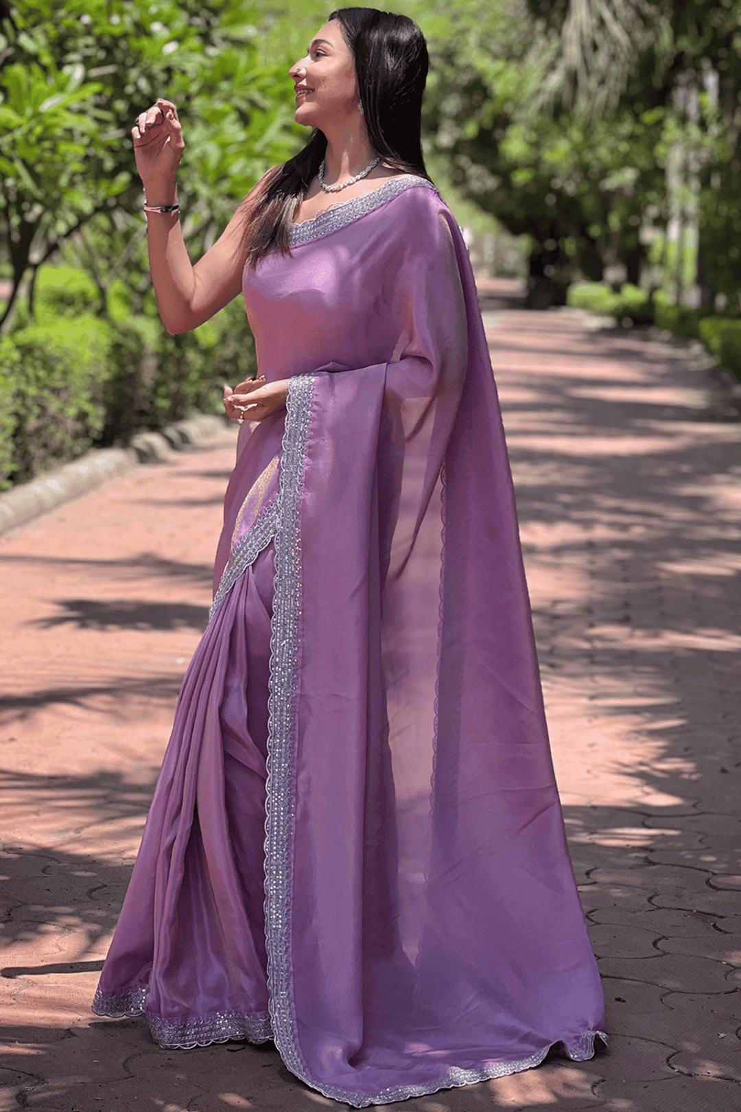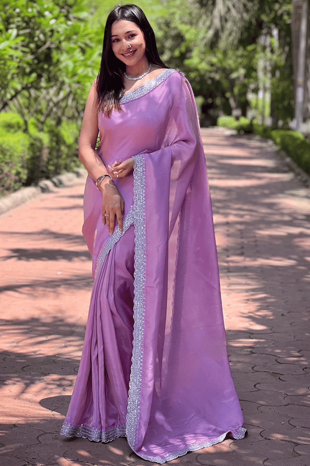 Lavender saree in Tissue Fabric.