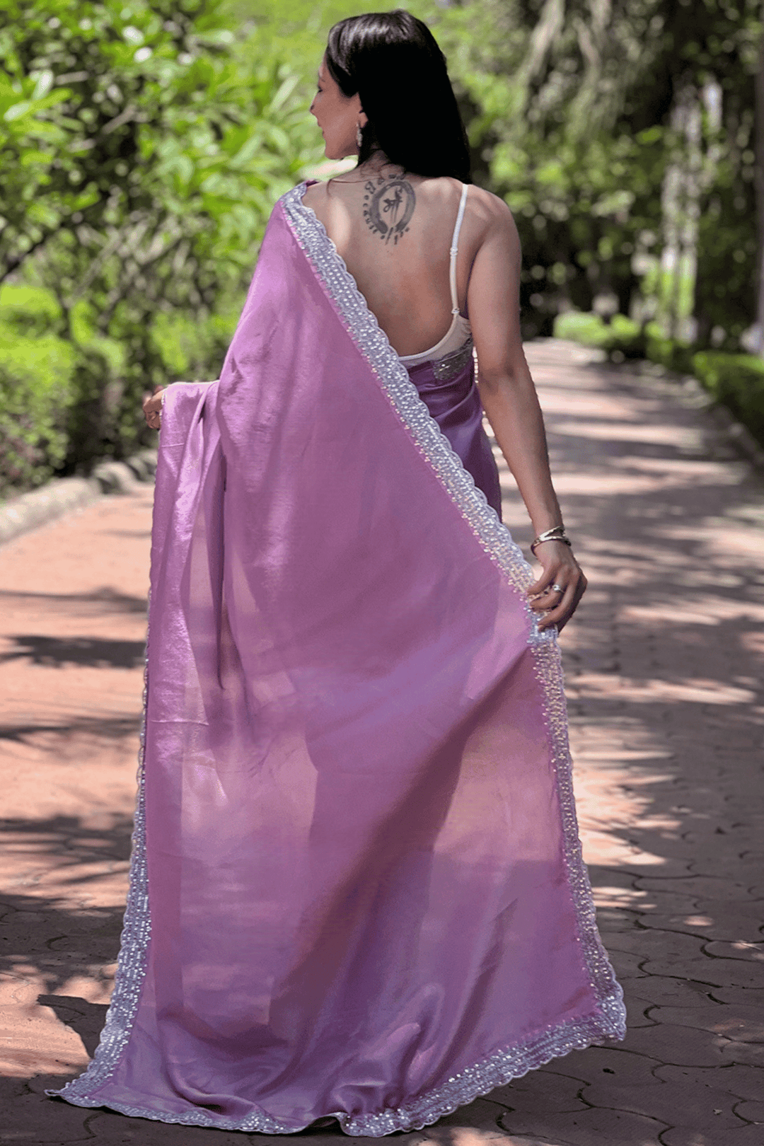 Length:- 5.5 meters & 0.8 Unstitched self fabric Blouse to style the blouse as you please!