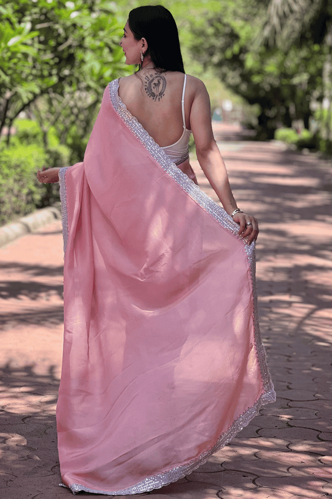 Length:- 5.5 meters & 0.8 Unstitched self fabric Blouse to style the blouse as you please!