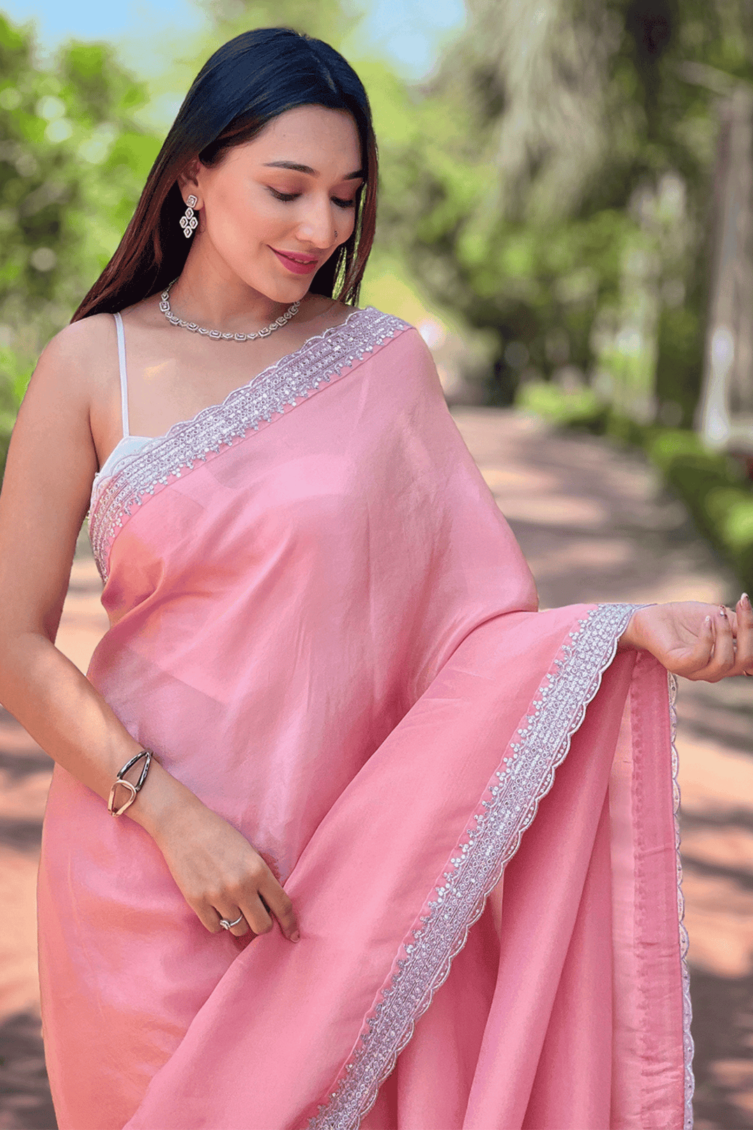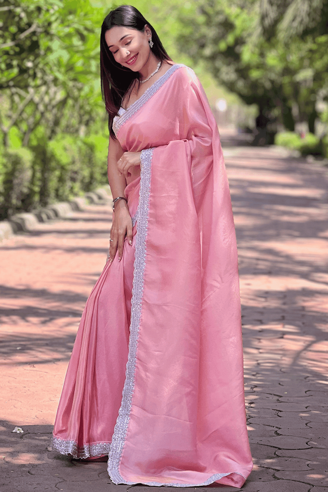 Ready To Wear Pink Blush Viscose Tissue Saree