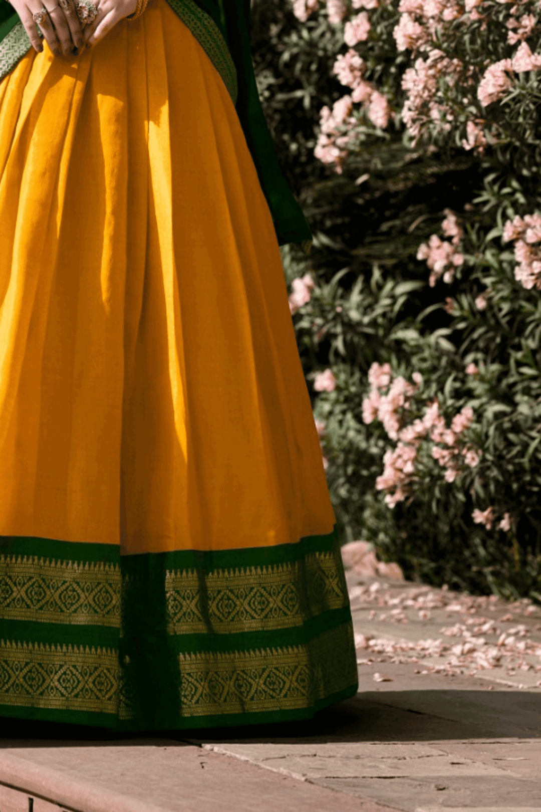 Glamwiz Gold N Green Half Saree Lehenga Set