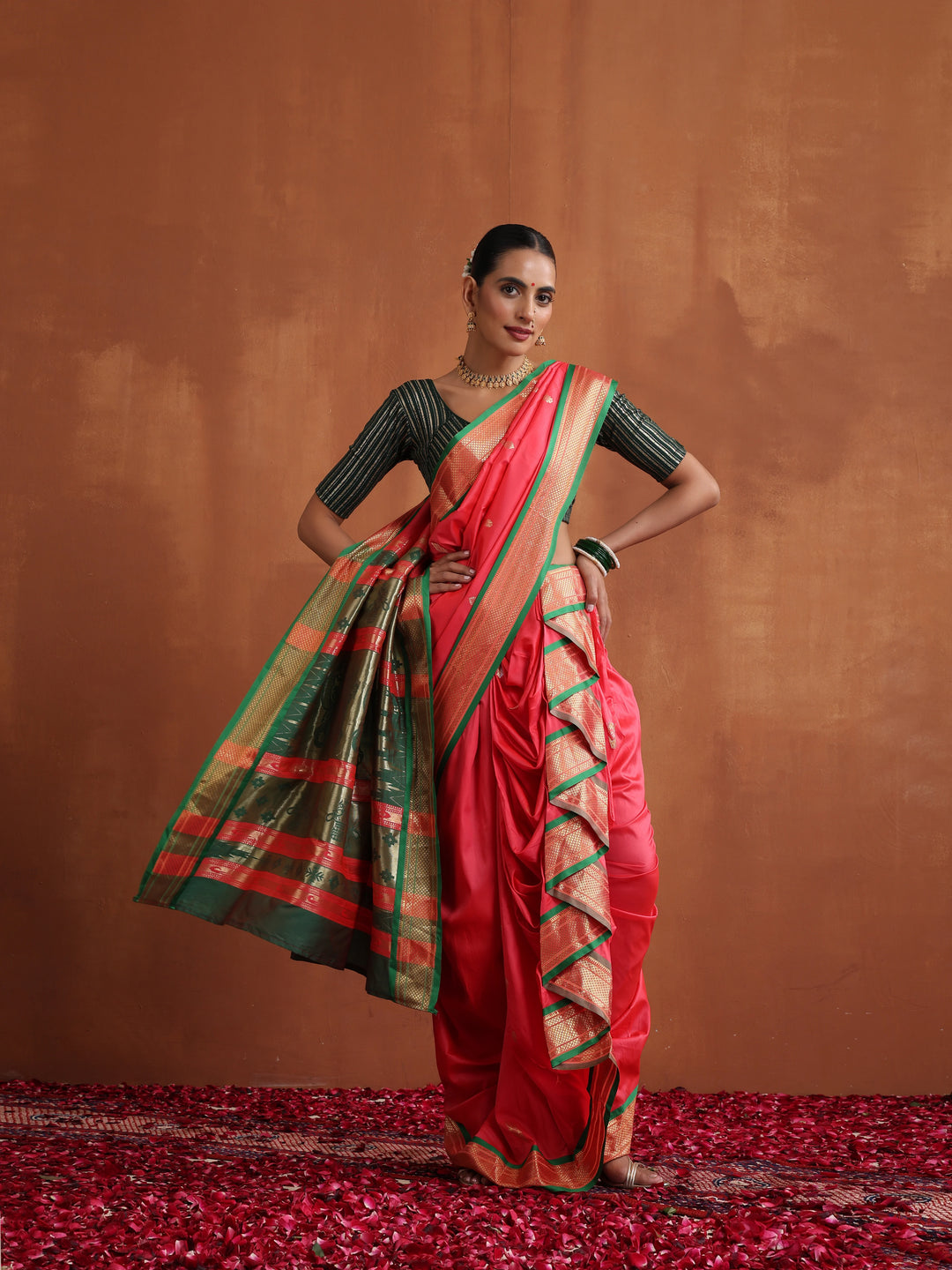 Care: Dry Clean Only. Do not crumble the fabric while drying. Store the saree in a cotton cloth to keep the fabric and zari's shine intact.