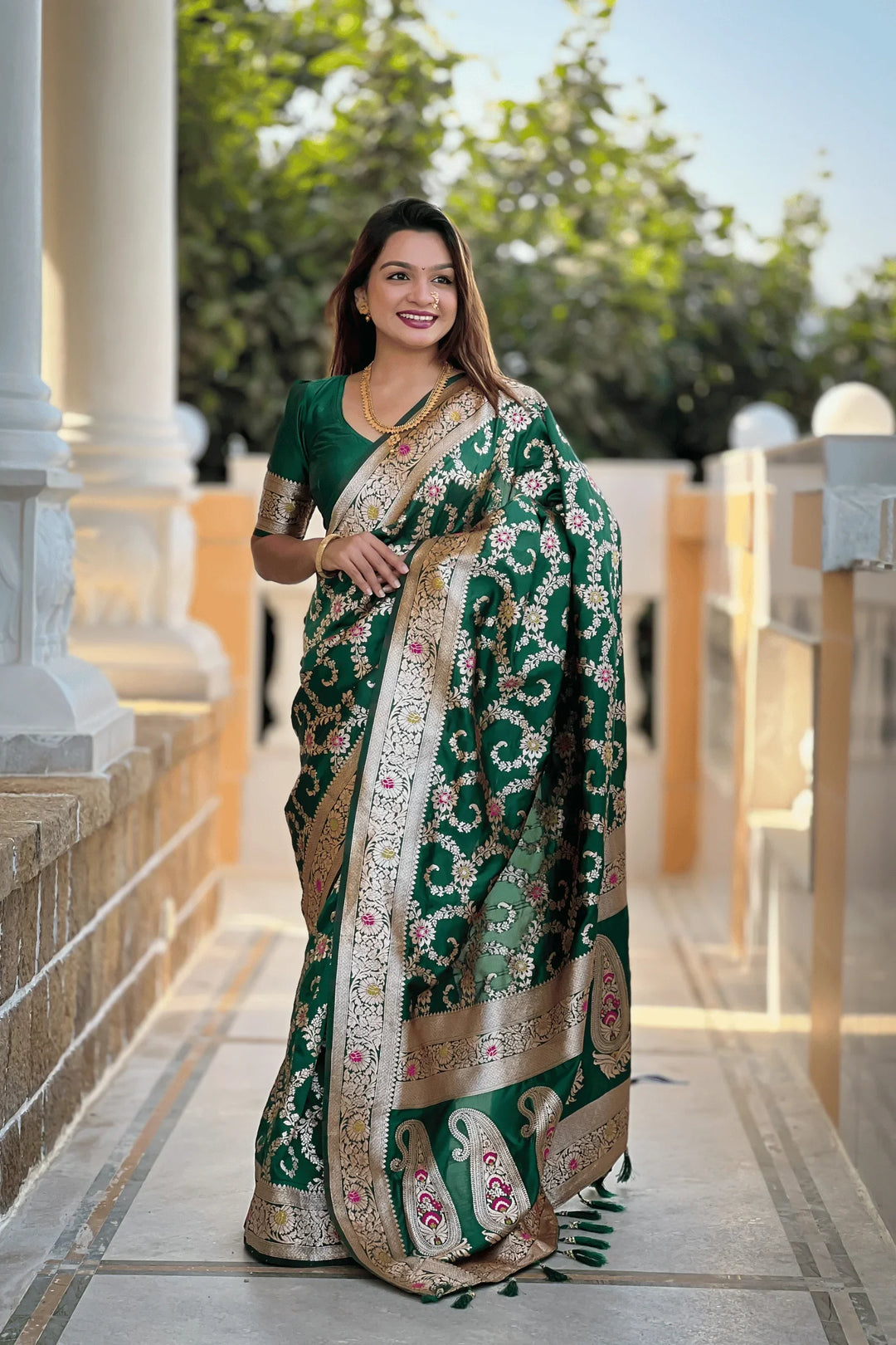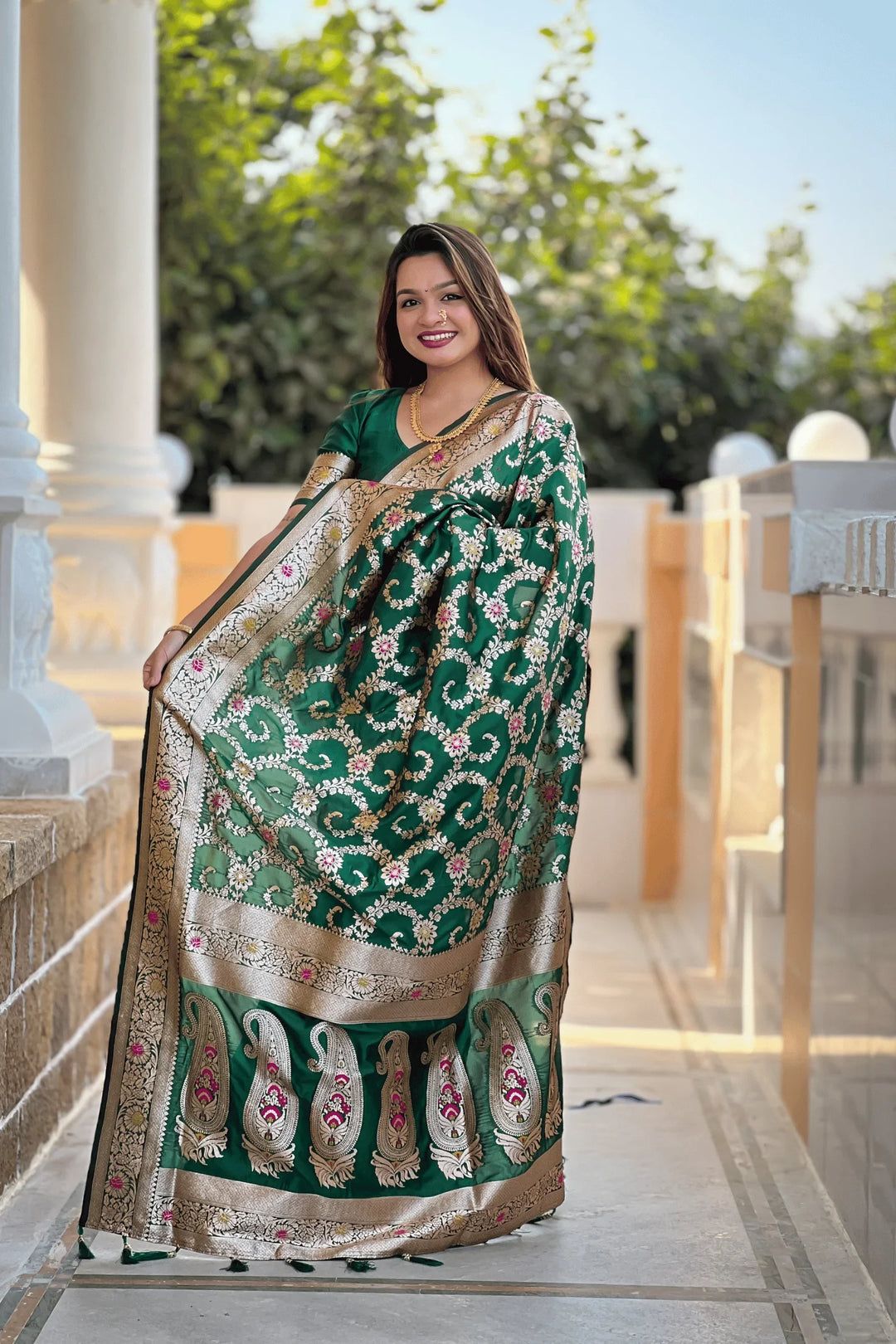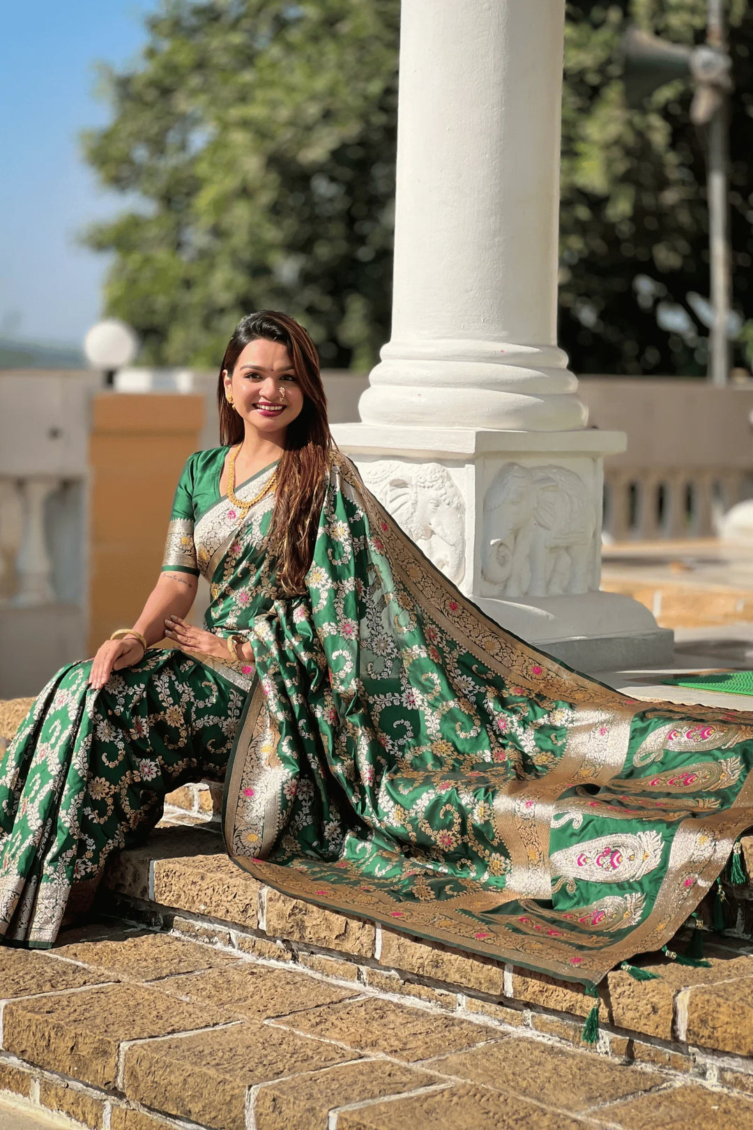 Rajwada Green | Ready to Wear Green Banarasi Silk Saree