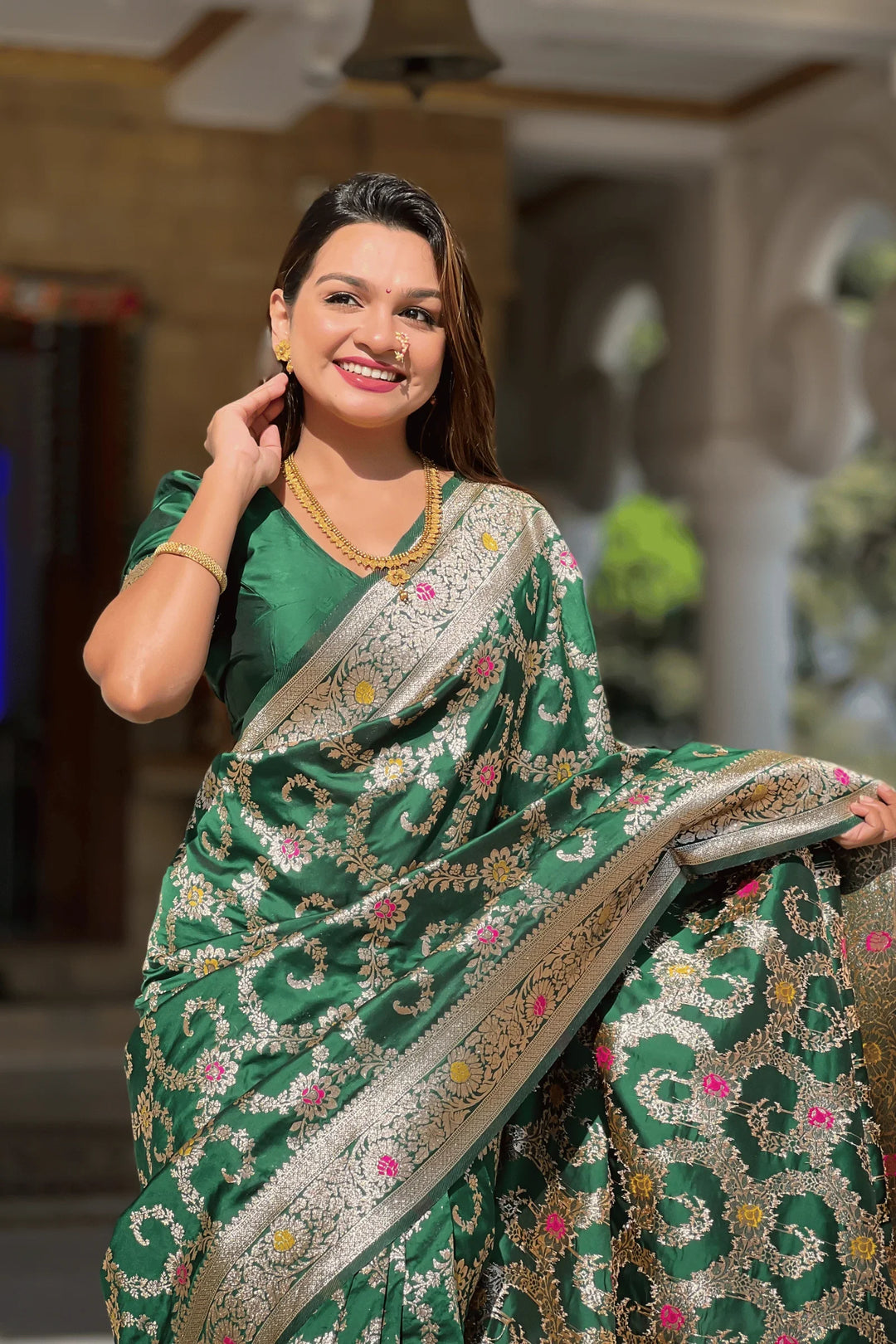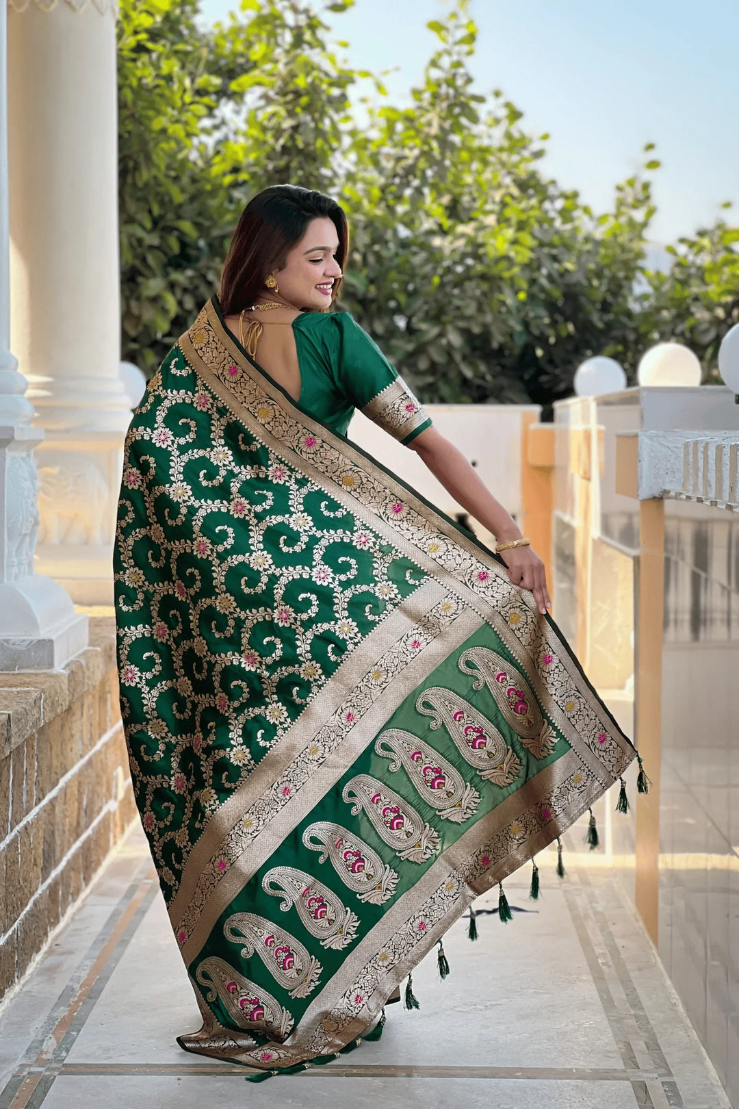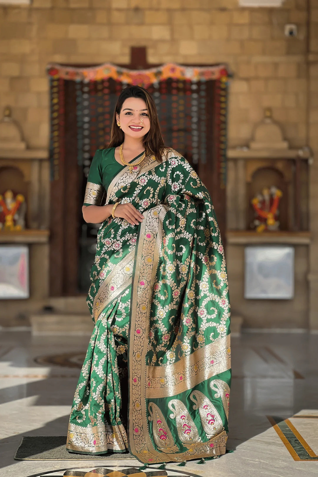 Rajwada Green | Ready to Wear Green Banarasi Silk Saree