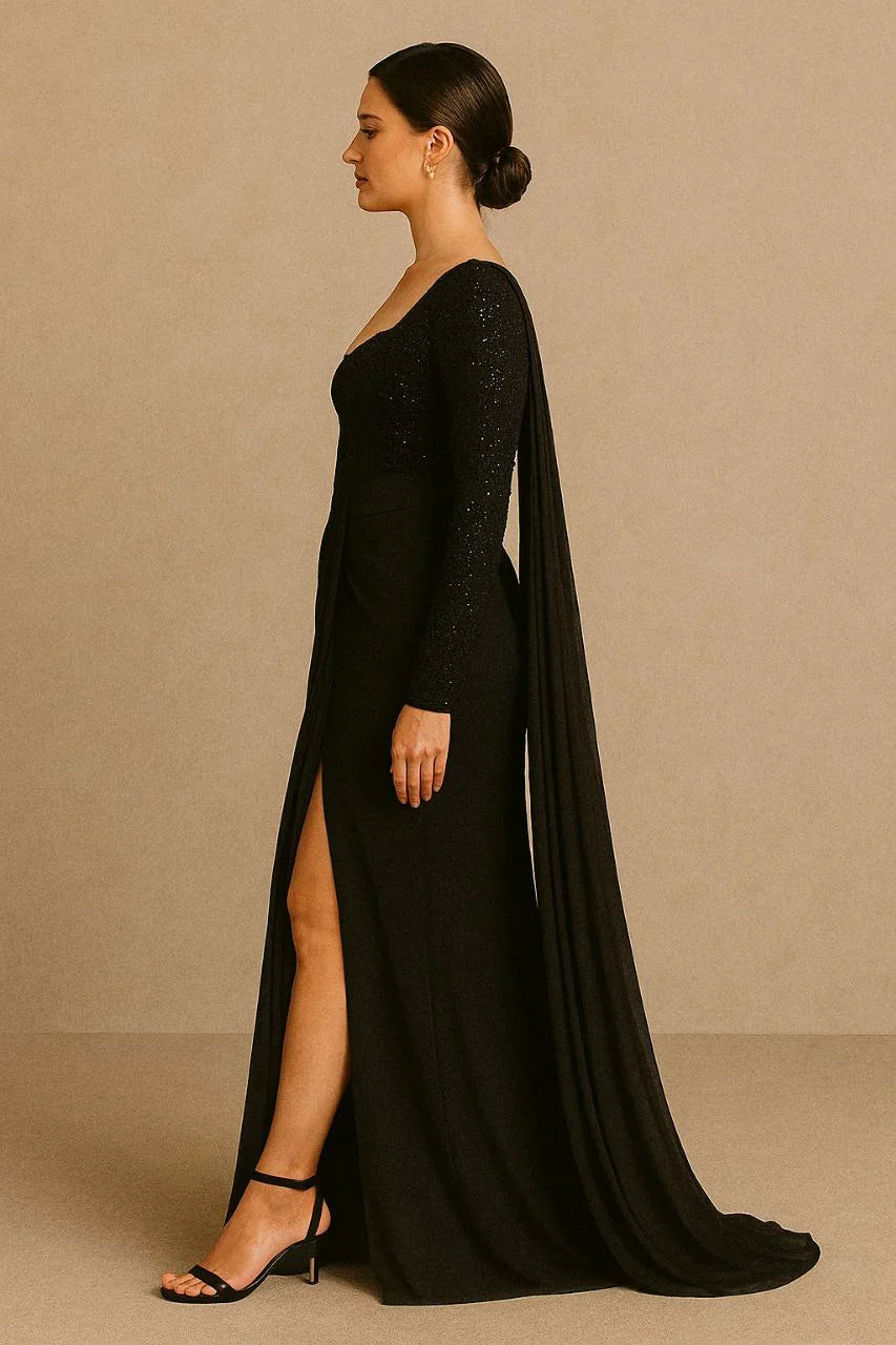 Channel timeless glam with a bold twist in Dark Desire—a stunning ready-to-wear saree in classic black designed for evening drama and after-dark elegance. Crafted in luxurious Roman Silk, this silhouette features a thigh-high slit and soft pre-pleated drape that’s effortlessly chic.