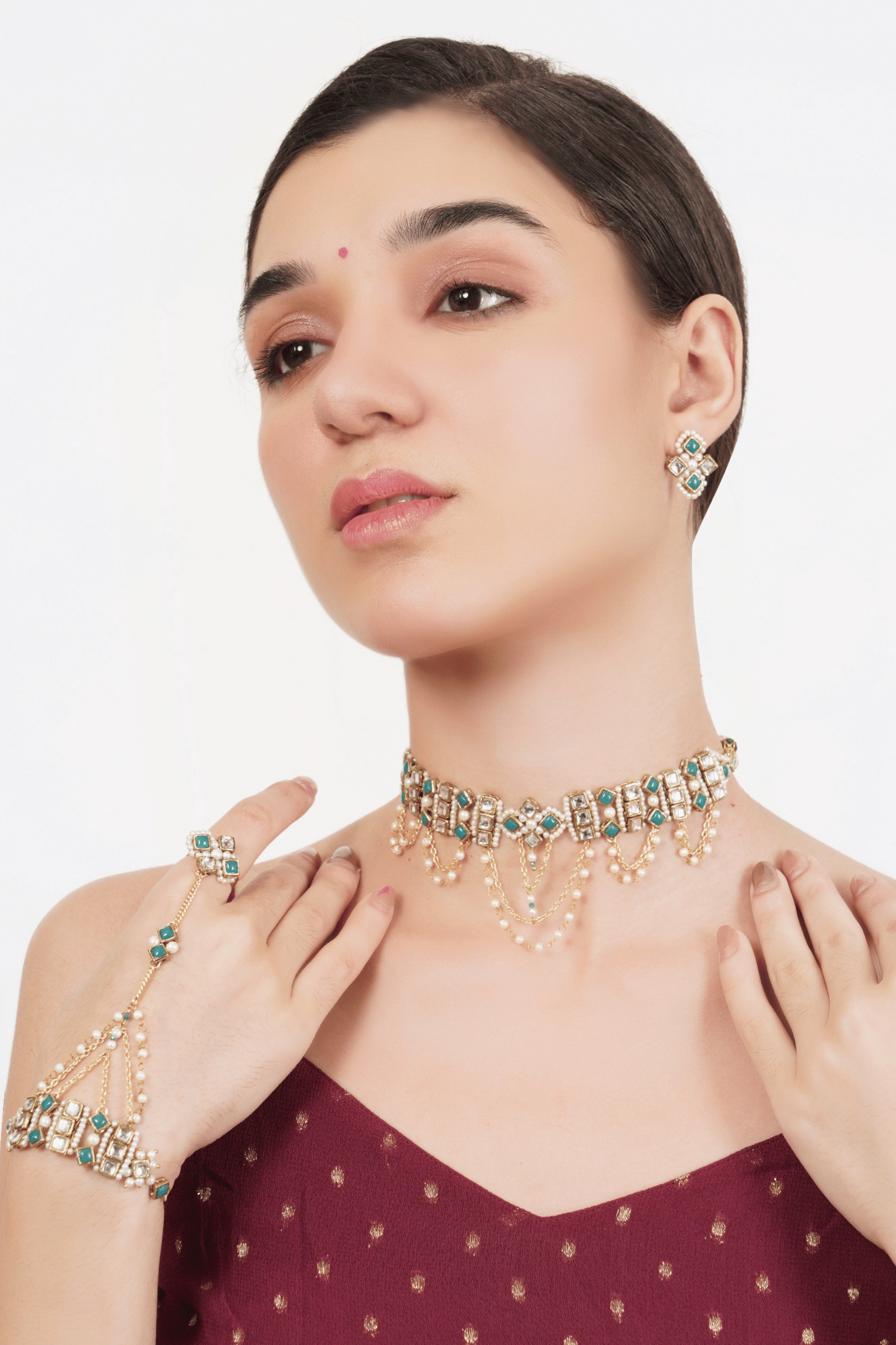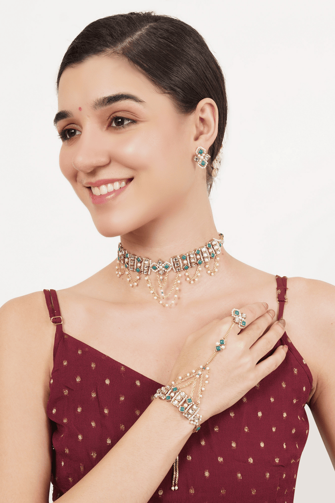 Adjustable Fit: Hathphool and necklace offer flexible sizing for a perfect fit