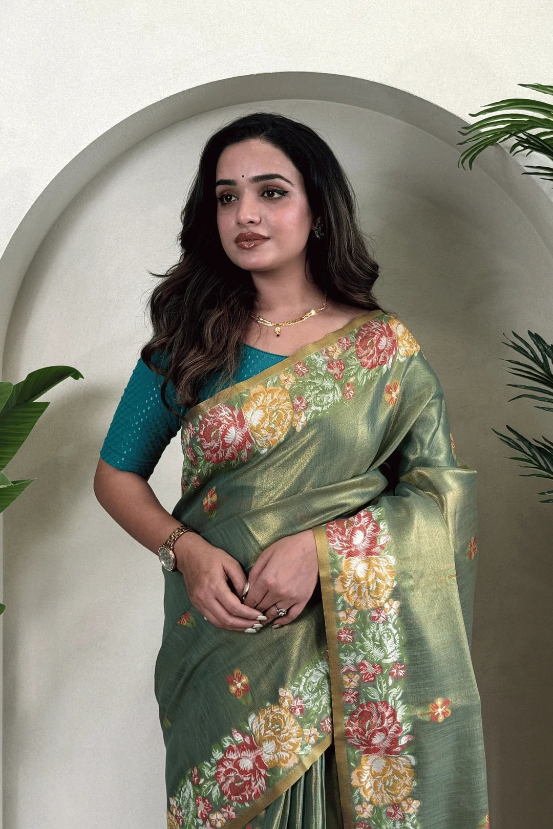 Floral Tissue Heritage | Ready to Wear Tissue Silk Weave Saree
