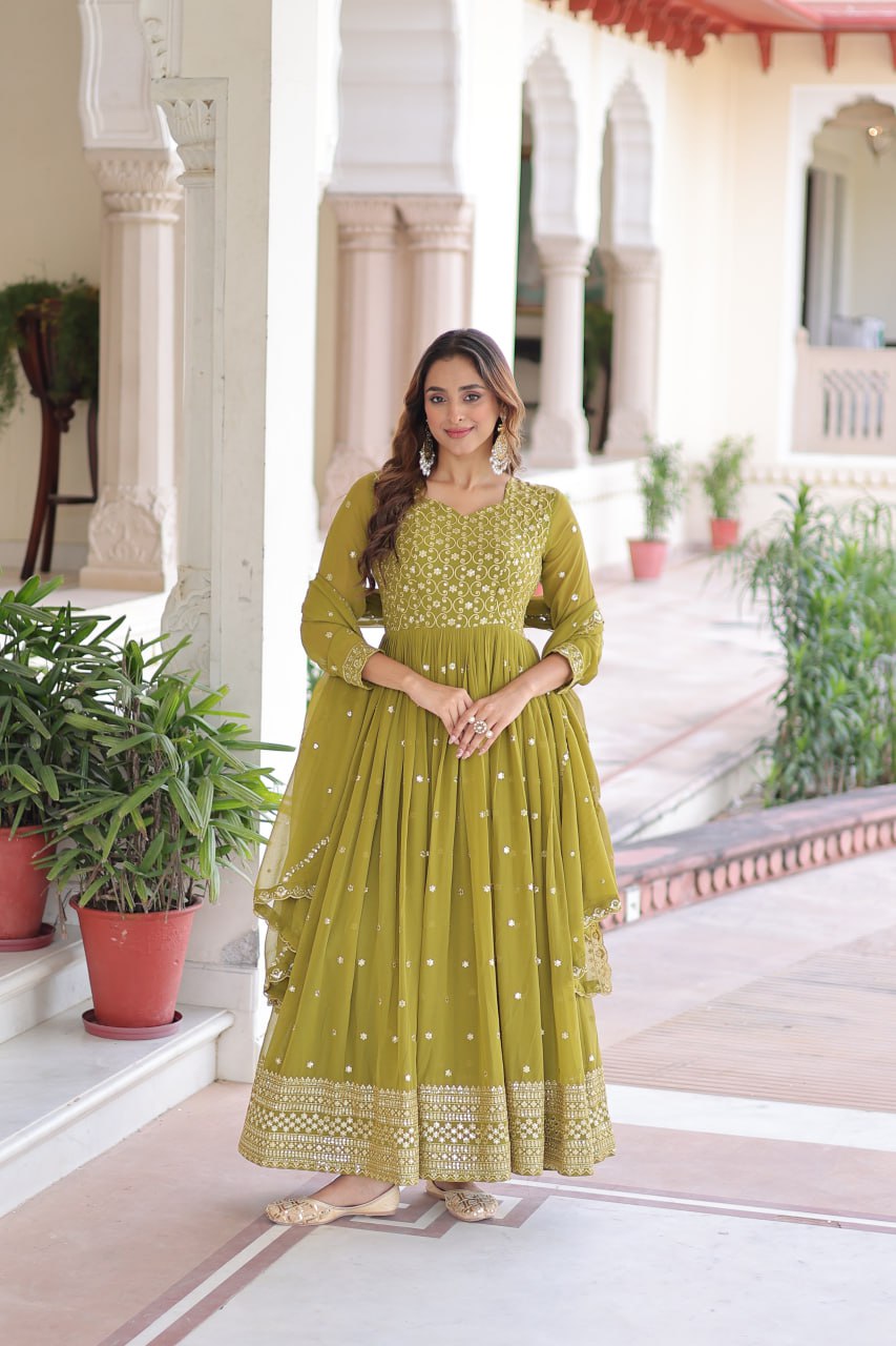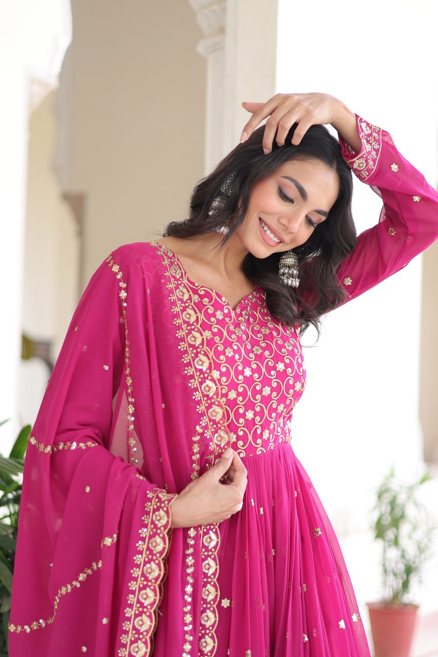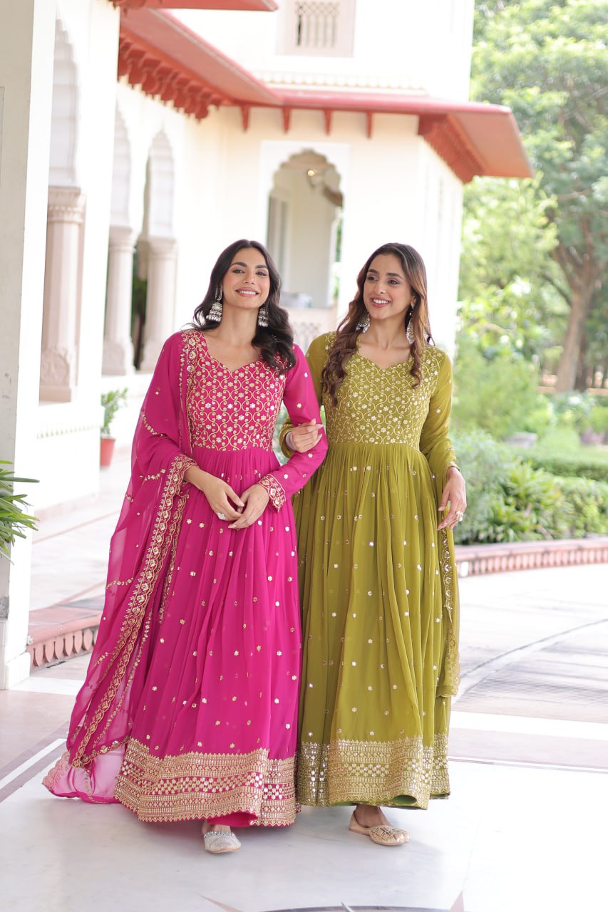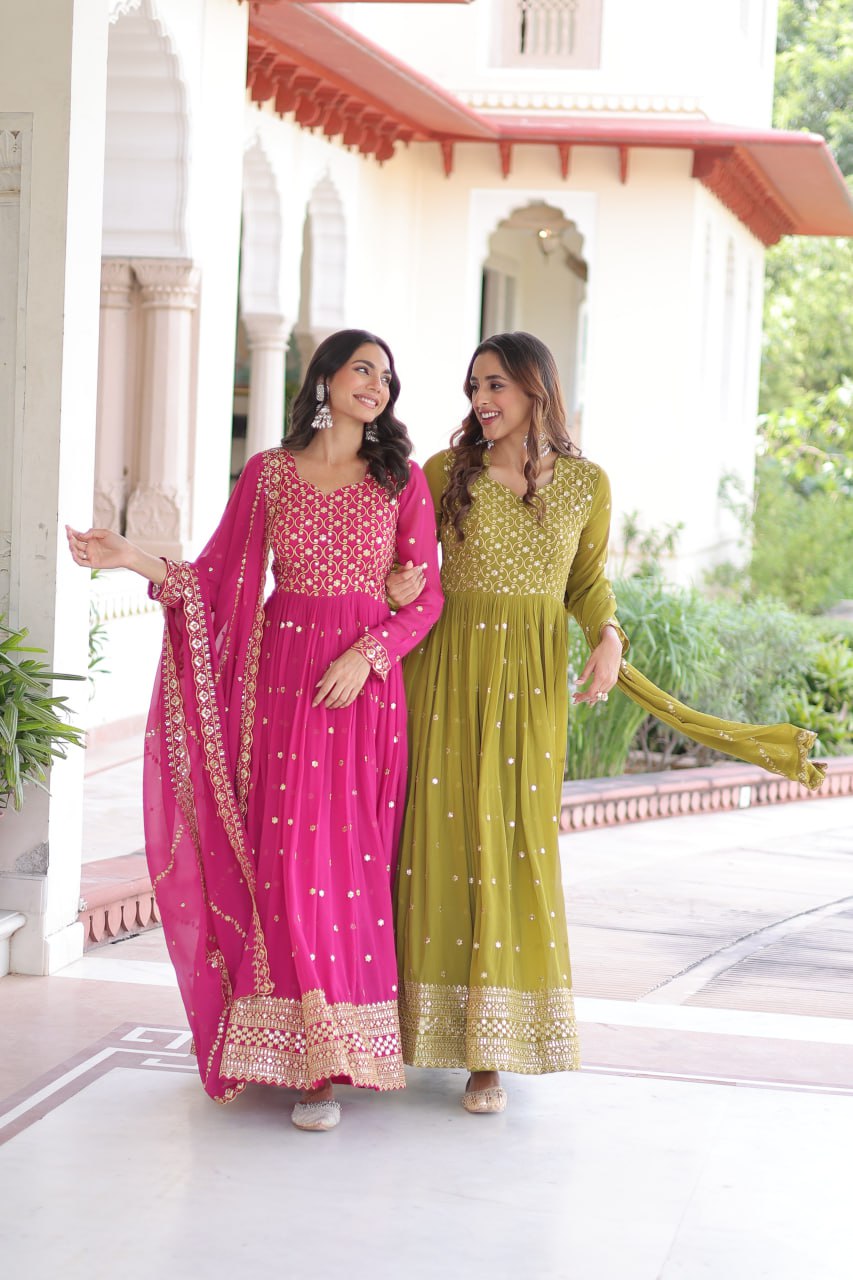 Step into a world of elegance with the Glamour Grace Anarkali Gown. Its exquisite design and graceful silhouette make it perfect for festive celebrations and special occasions. Radiate charm and sophistication while feeling effortlessly comfortable. A timeless piece that promises to turn heads wherever you go. Let every moment be glamorous with Glamour Grace.