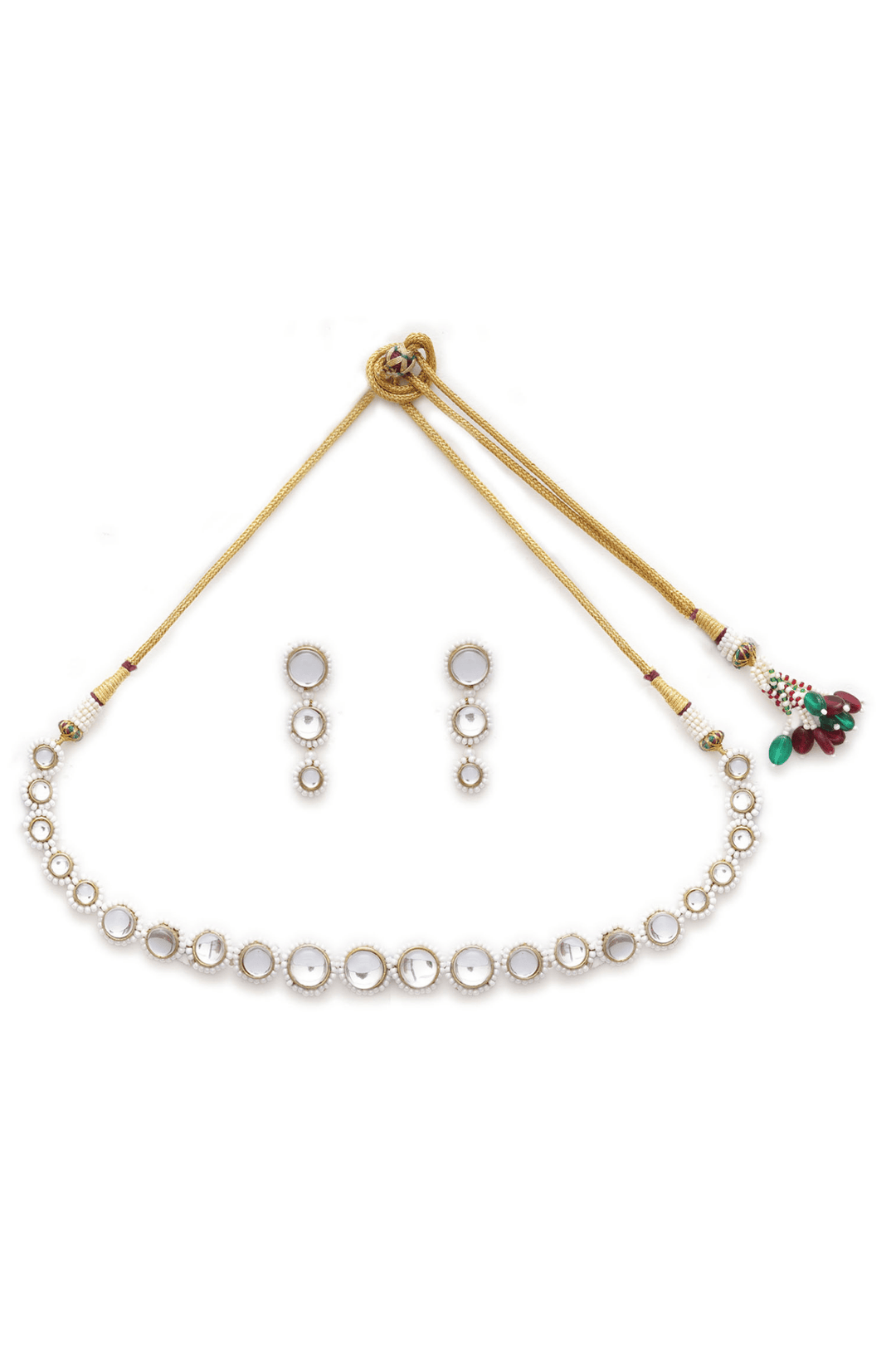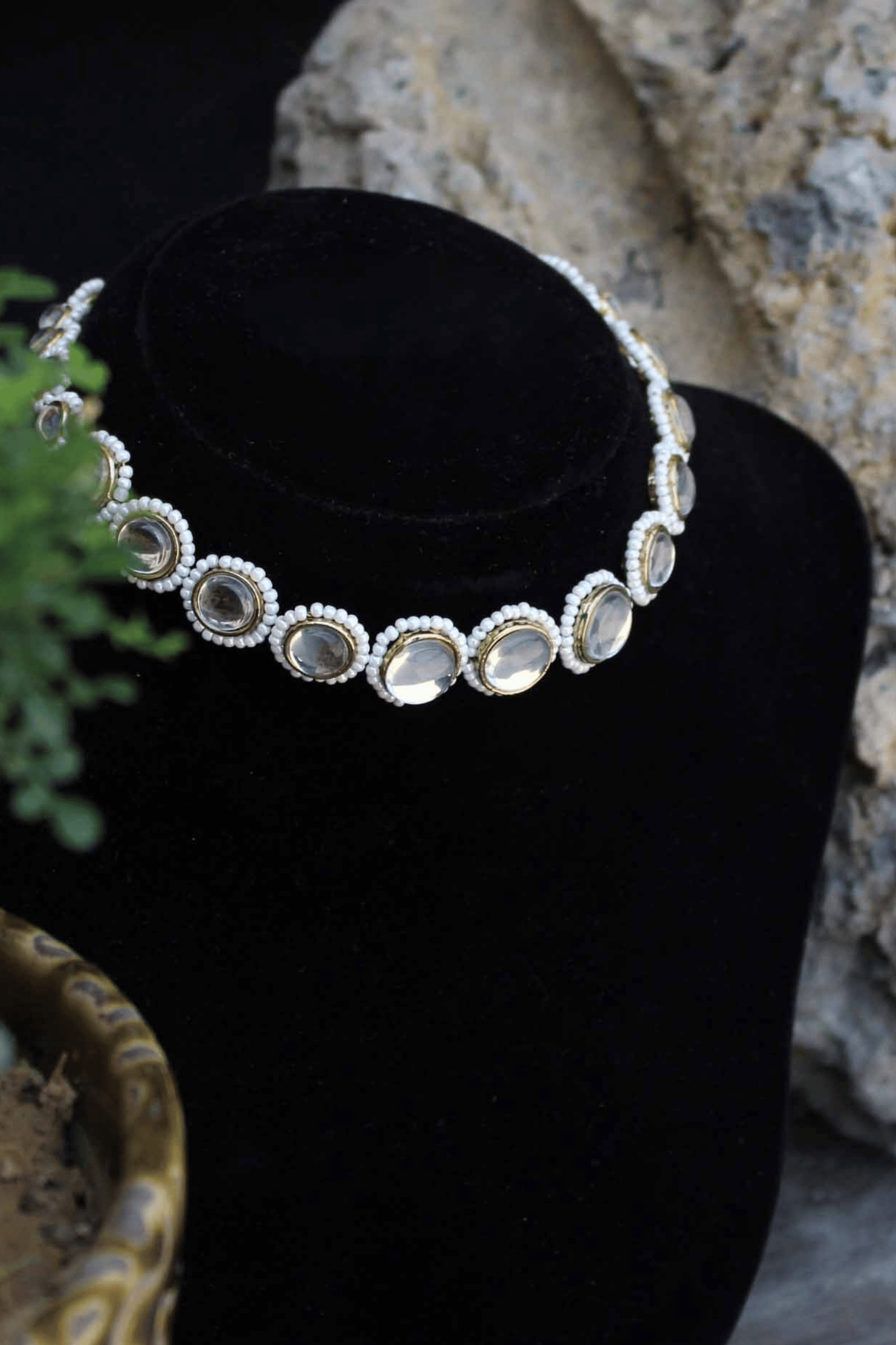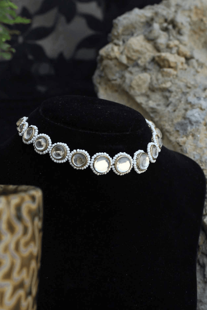 Elegant Design: Round Kundan single-line necklace with sparkling stone accents