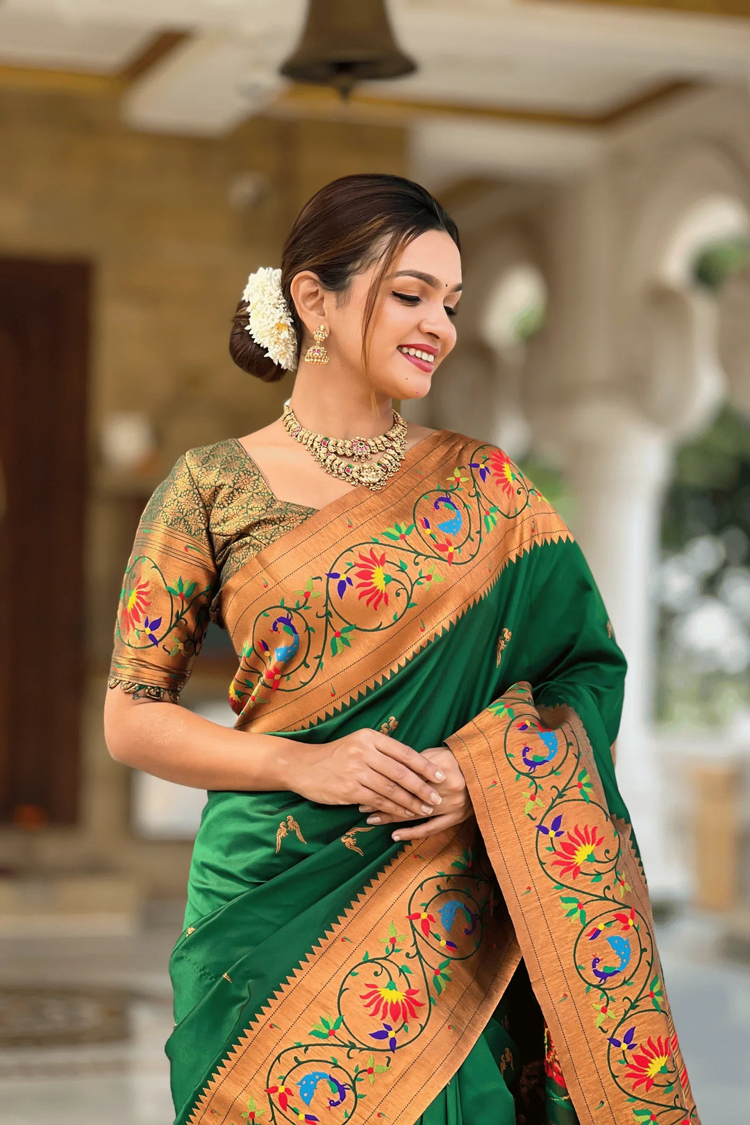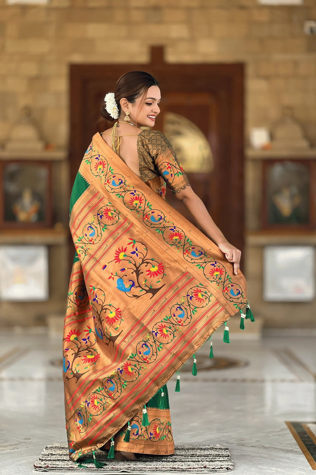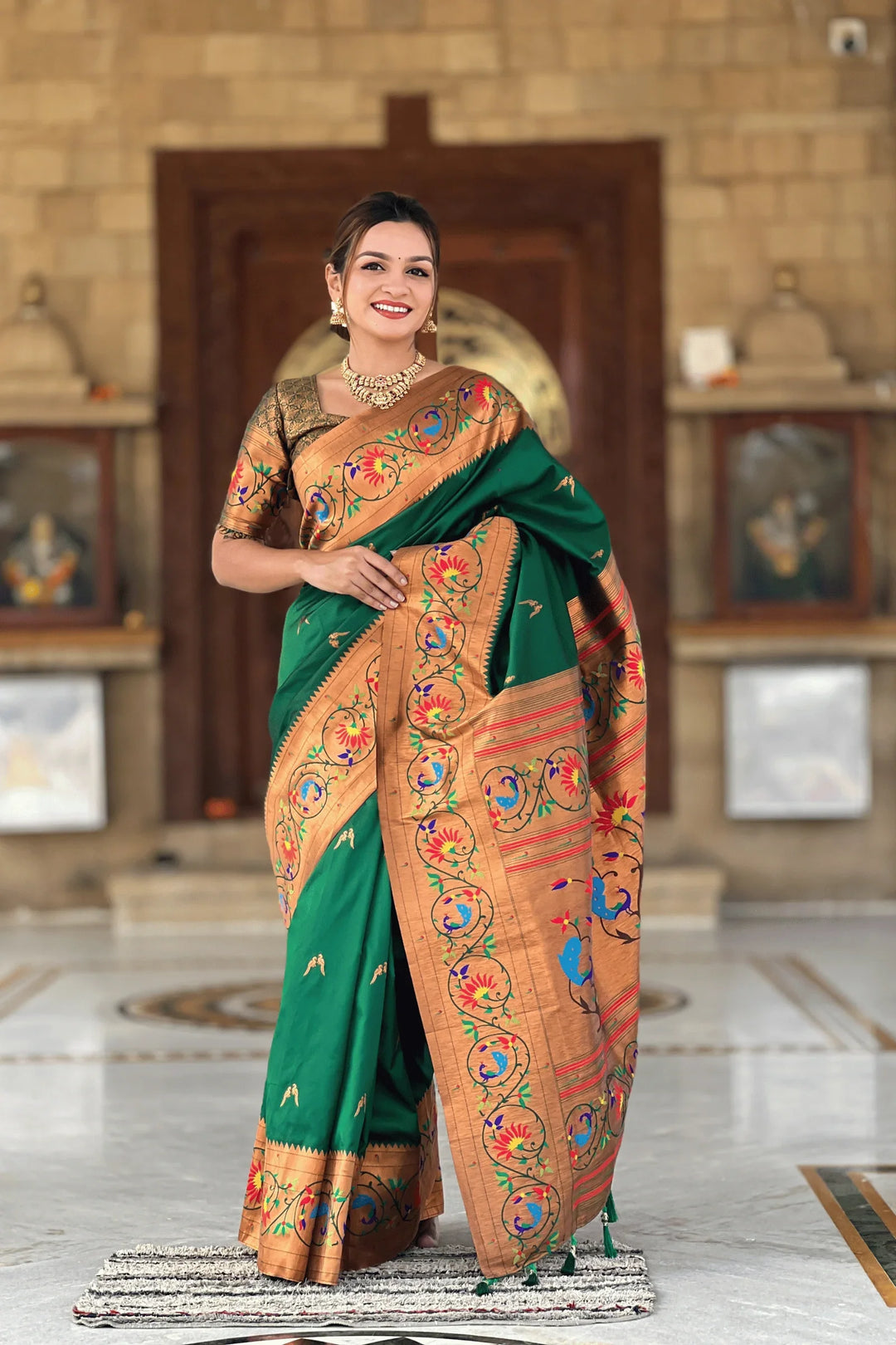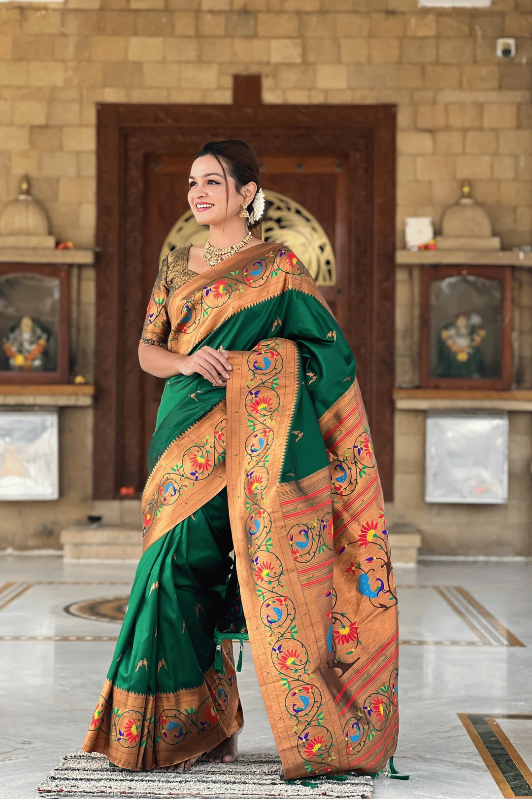 Hariyali Green Ready to Wear Peacock Silk Paithani Saree