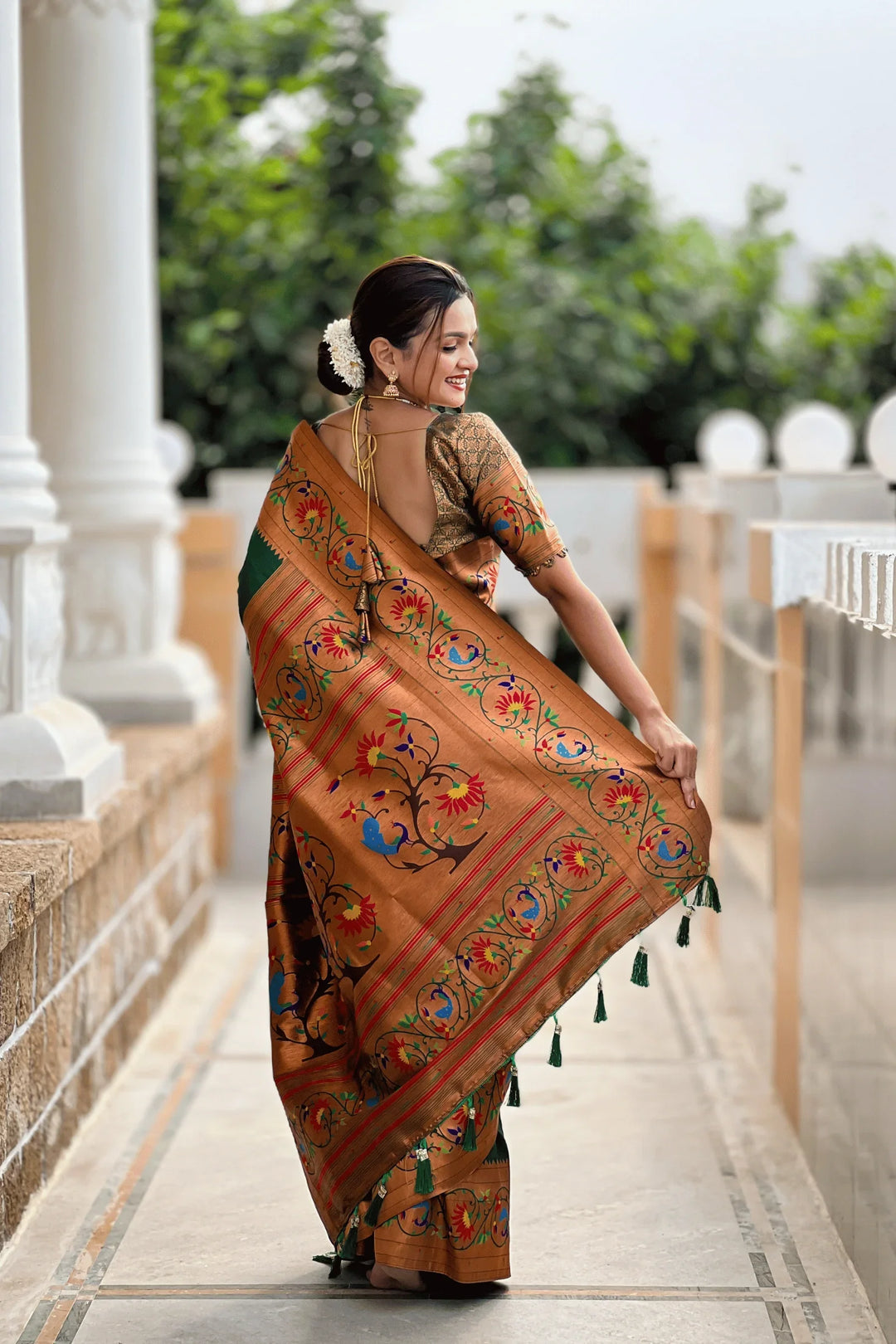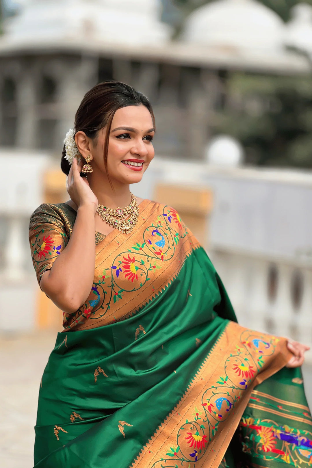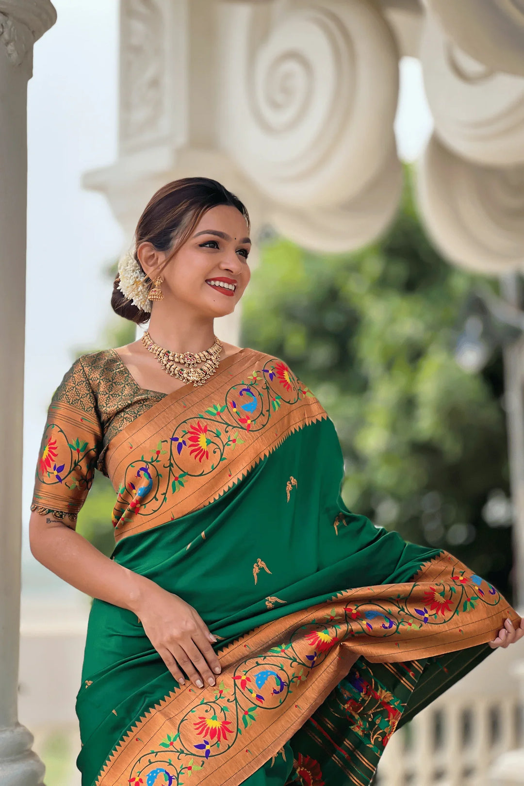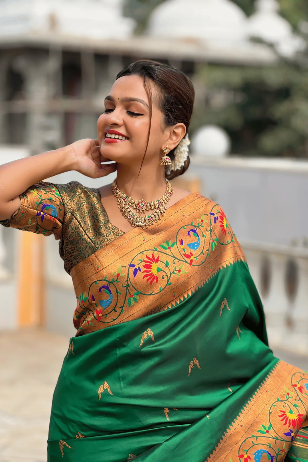 Hariyali Green Ready to Wear Peacock Silk Paithani Saree