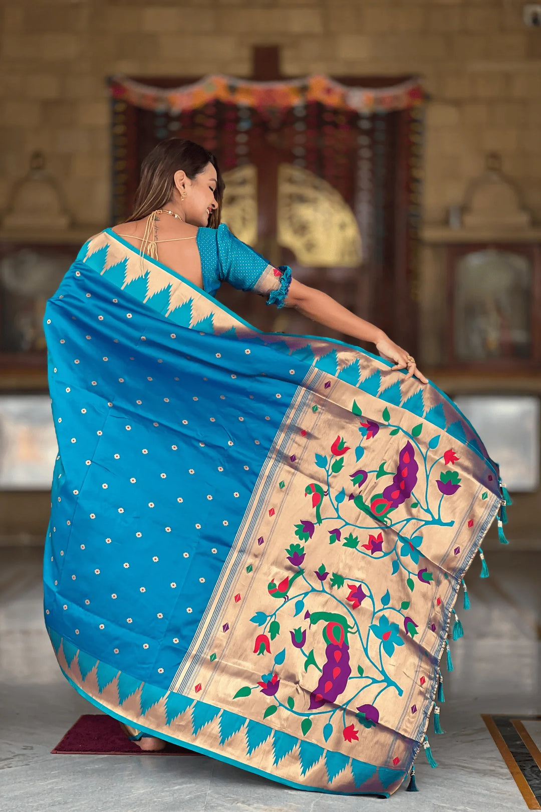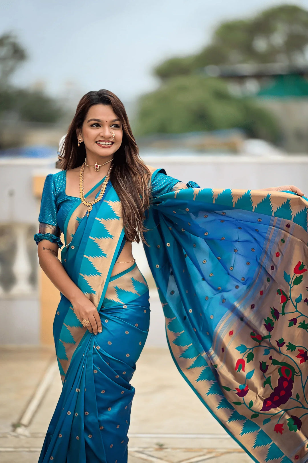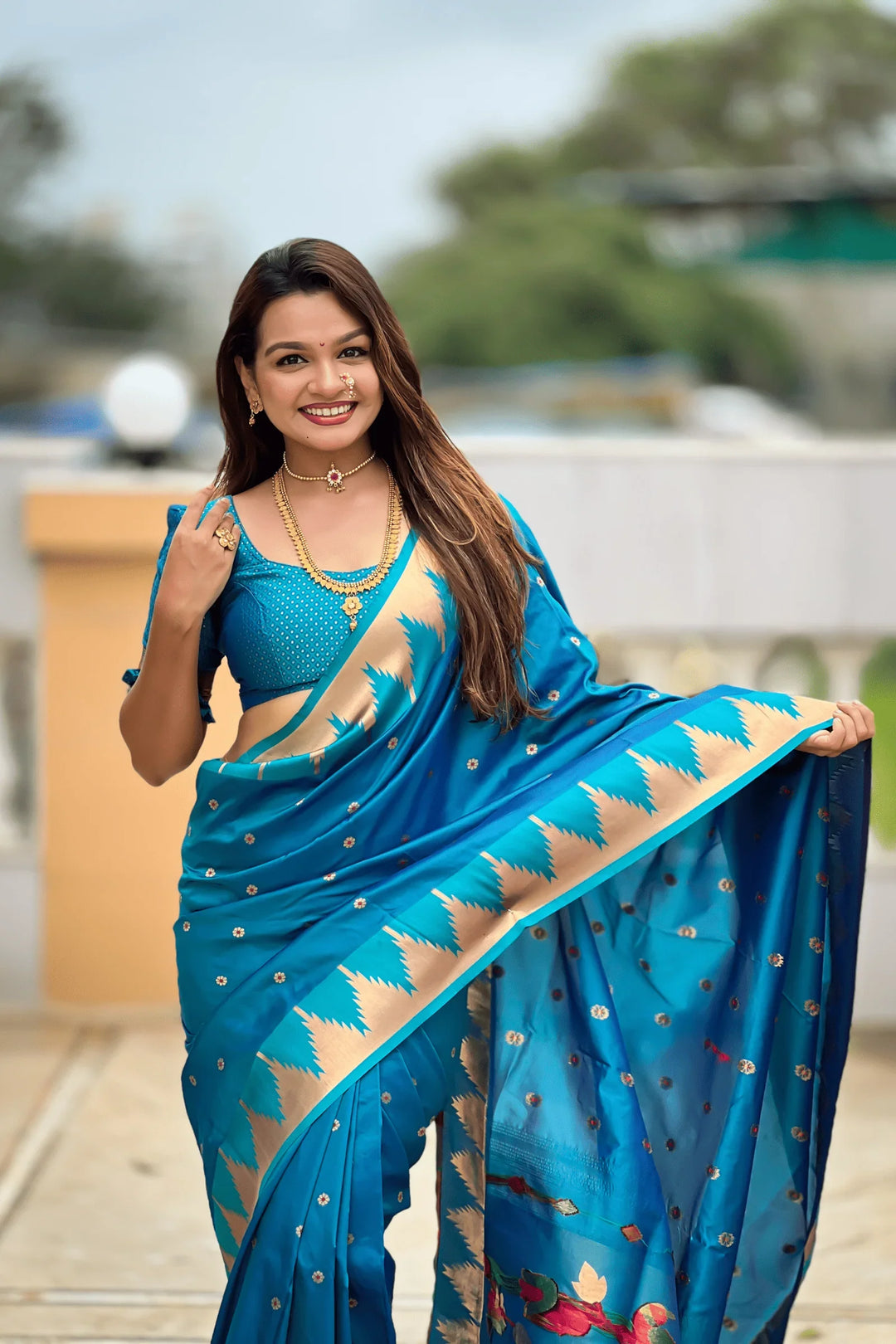 Imperial Peacock | Ready to Wear Blue Paithani Silk Saree