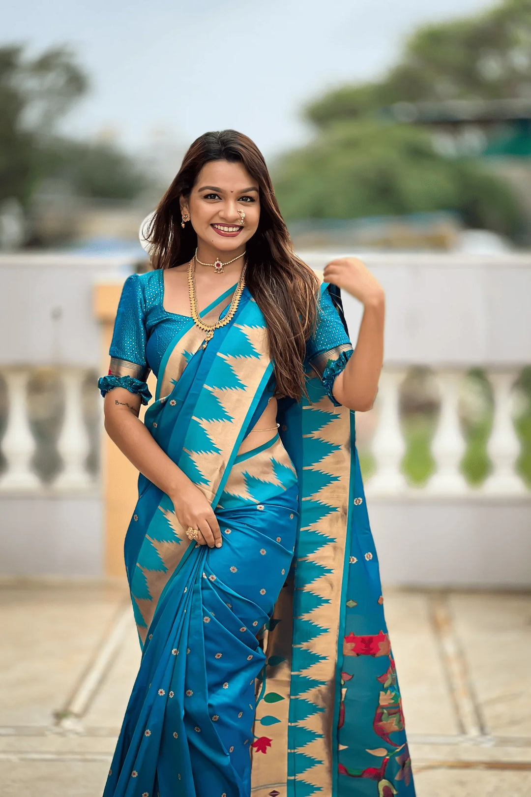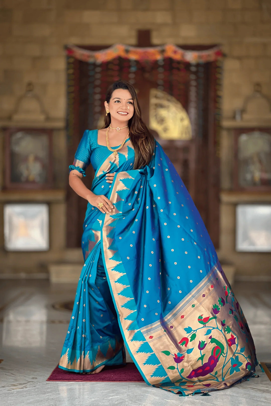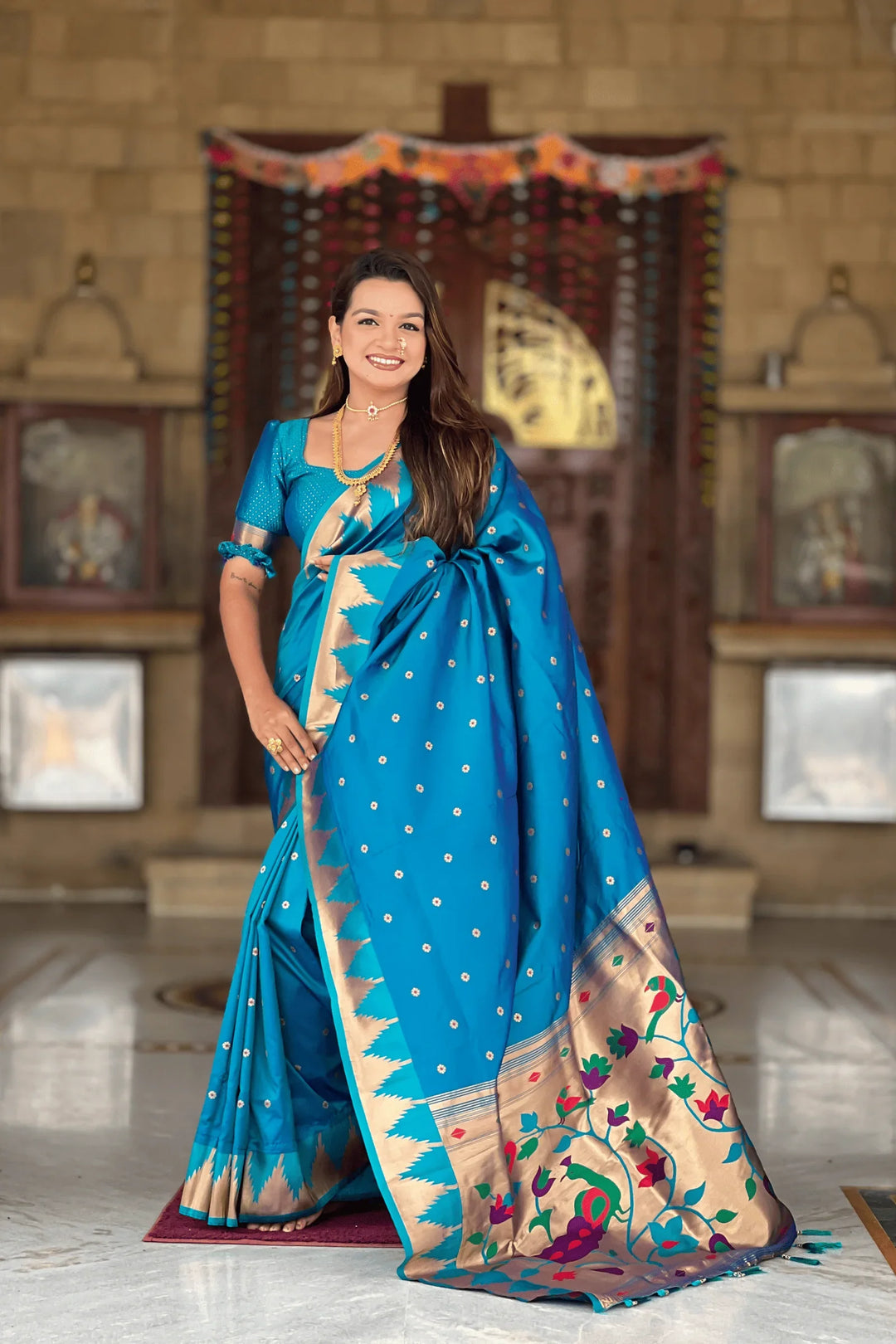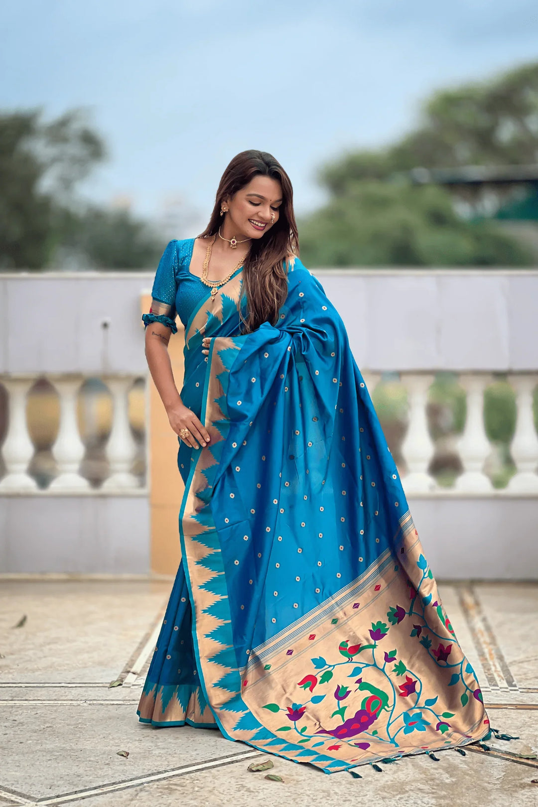 Imperial Peacock | Ready to Wear Blue Paithani Silk Saree