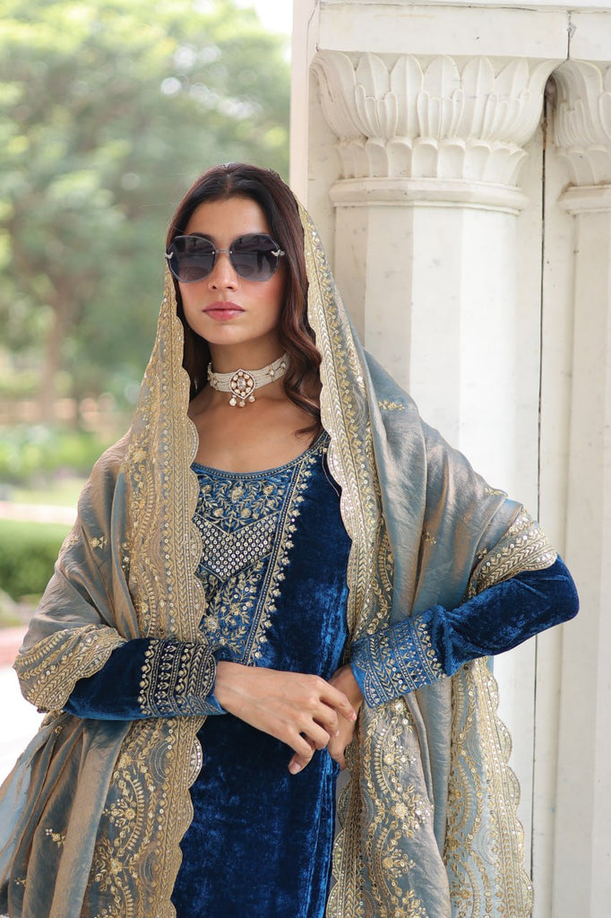 Royal Zari Velvet Suit Set- Stitched 3 Pc