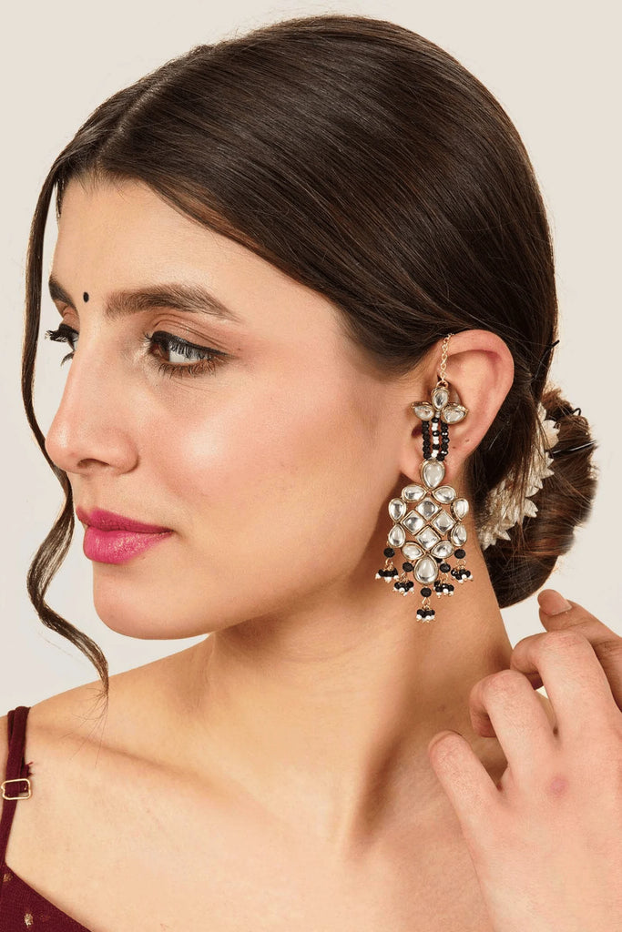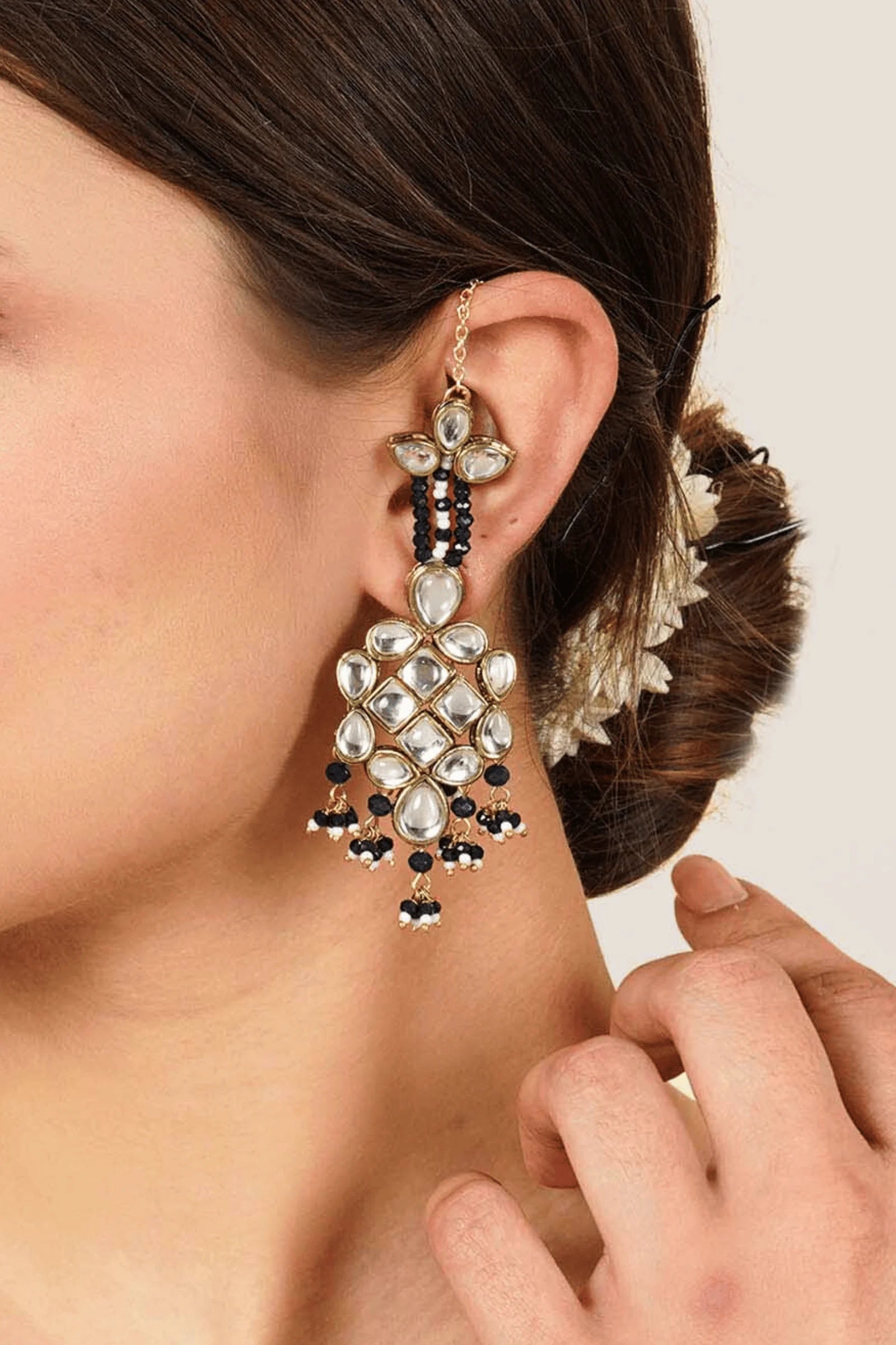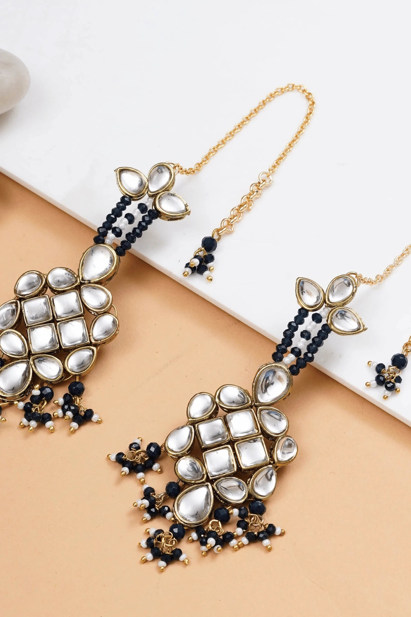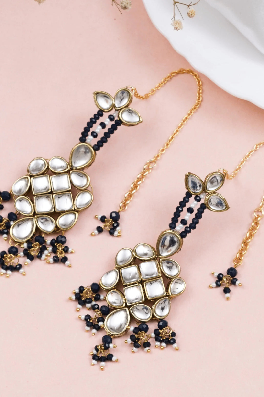 Adorned with hand-set Kundan stones and deep sapphire-toned beads, Noir Nazakat embodies sophistication for every celebration — from festive soirées to intimate wedding gatherings. Lightweight yet statement-worthy, these earrings are designed to make heads turn effortlessly.