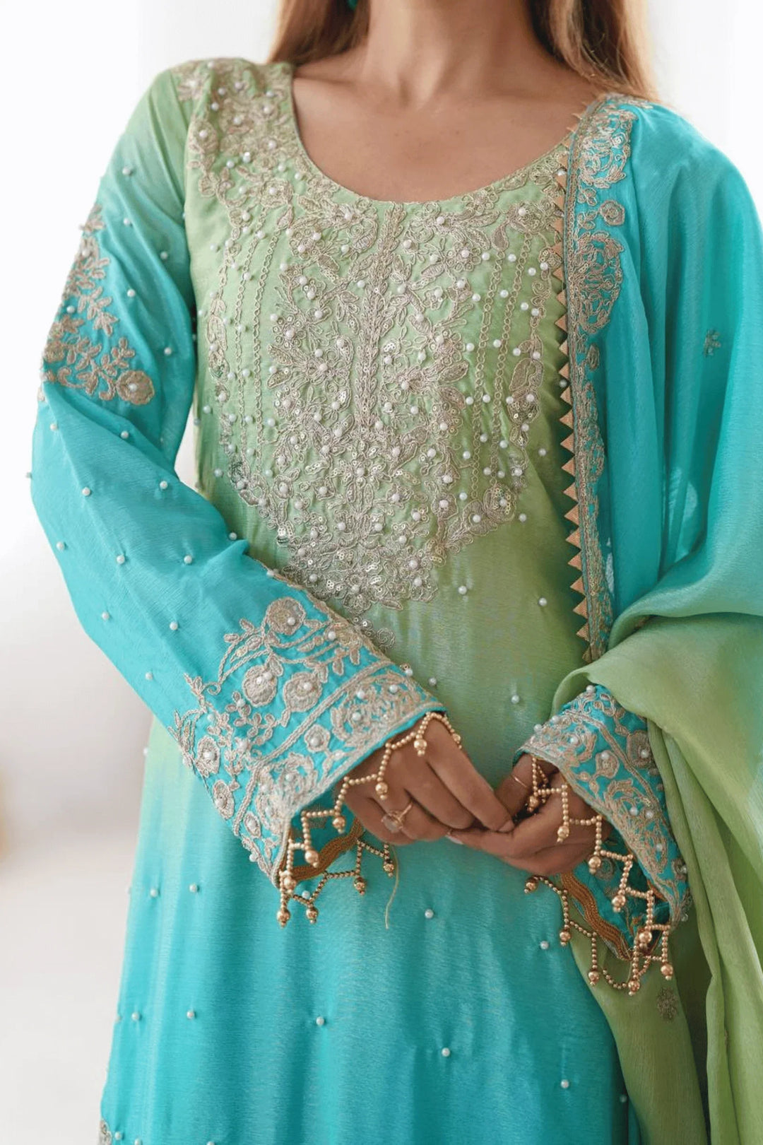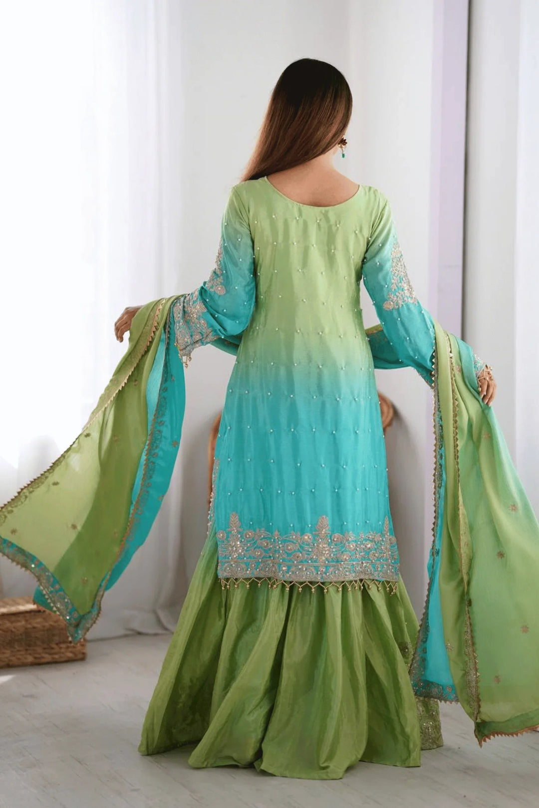 Noor-e-Nazakat | Aqua Green Ombre Sharara Suit