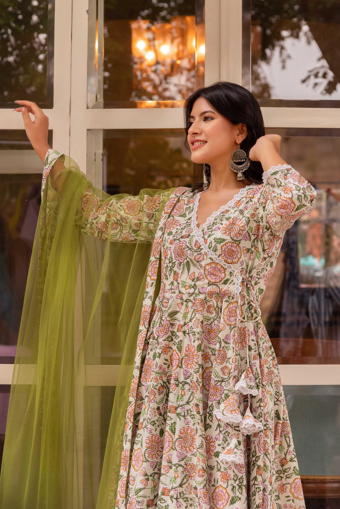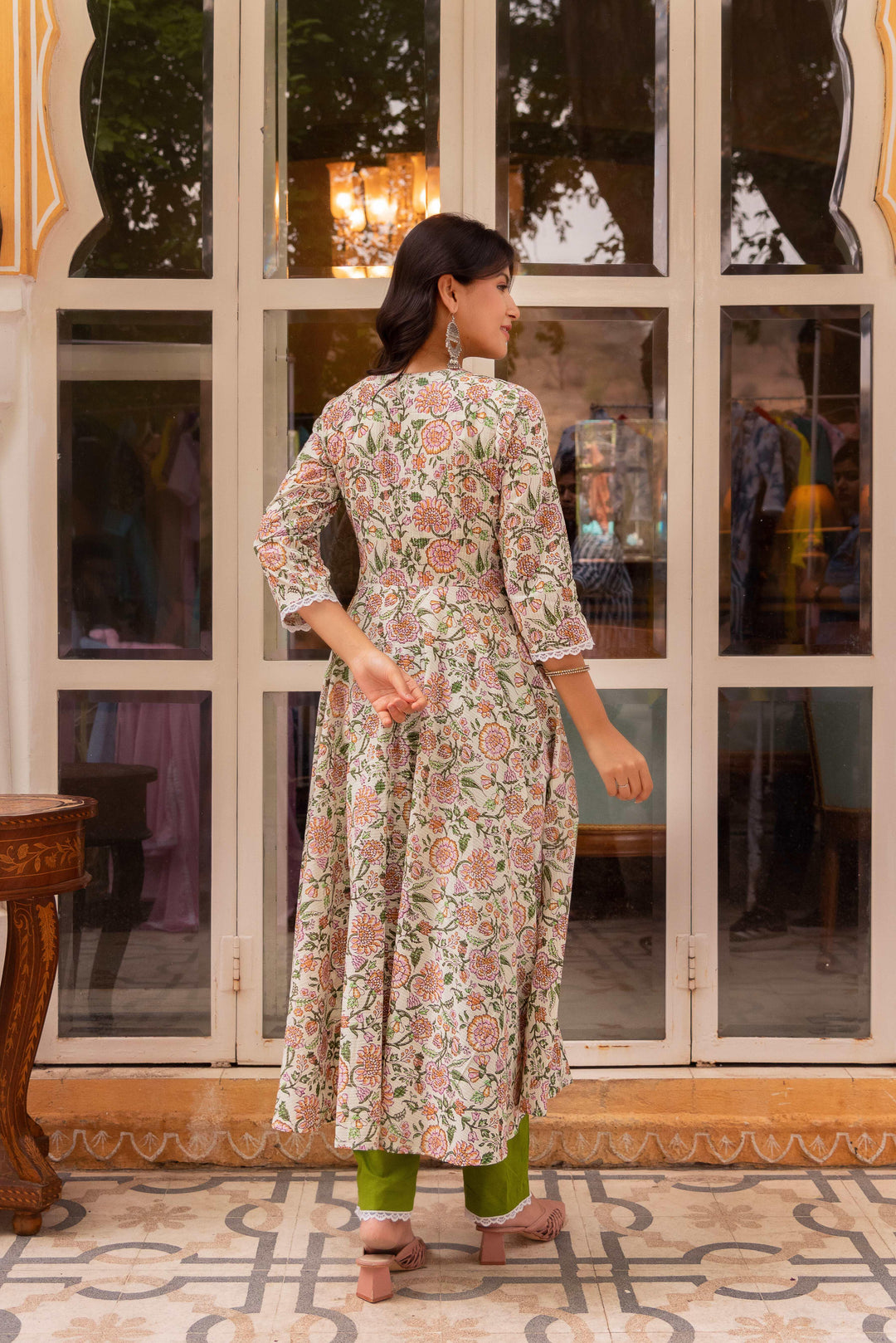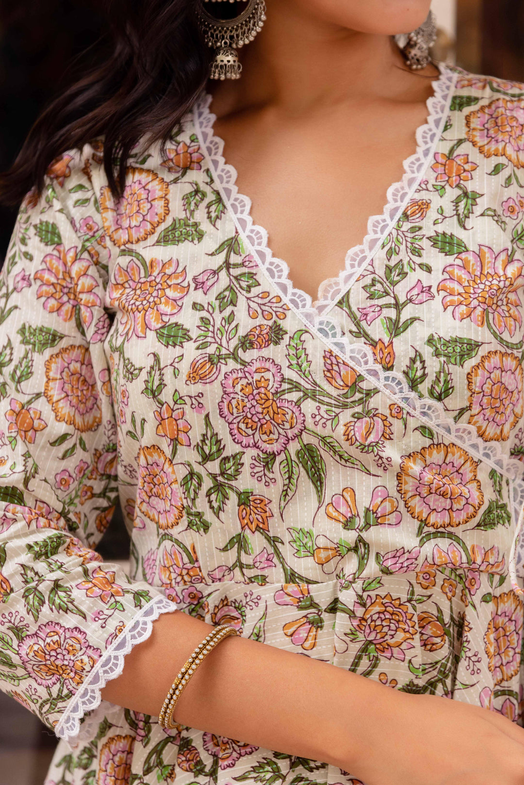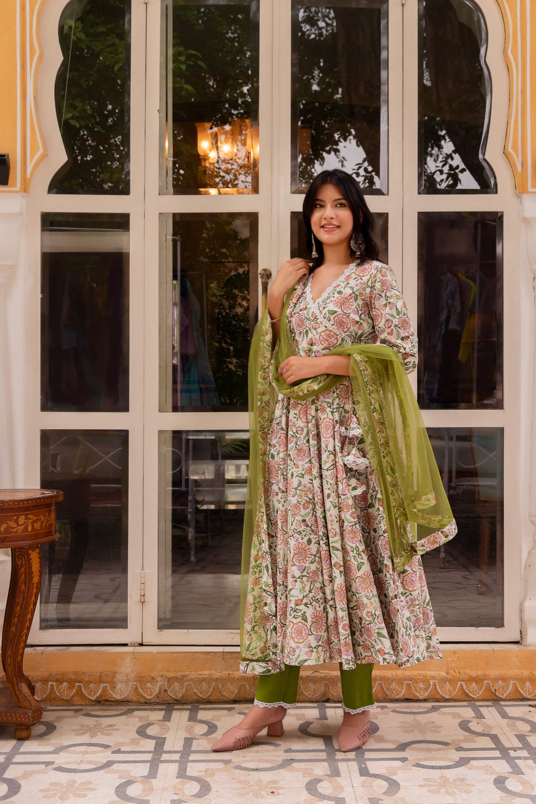 Olive Printed Pure Cotton Angrakha Set