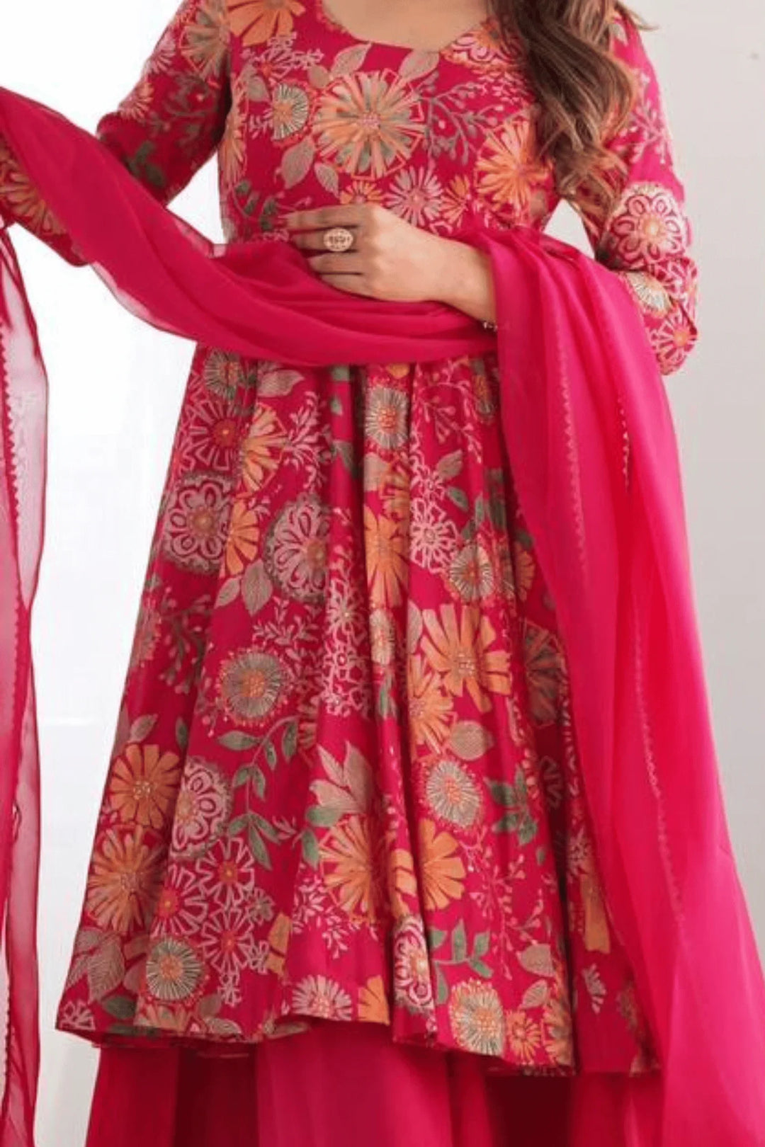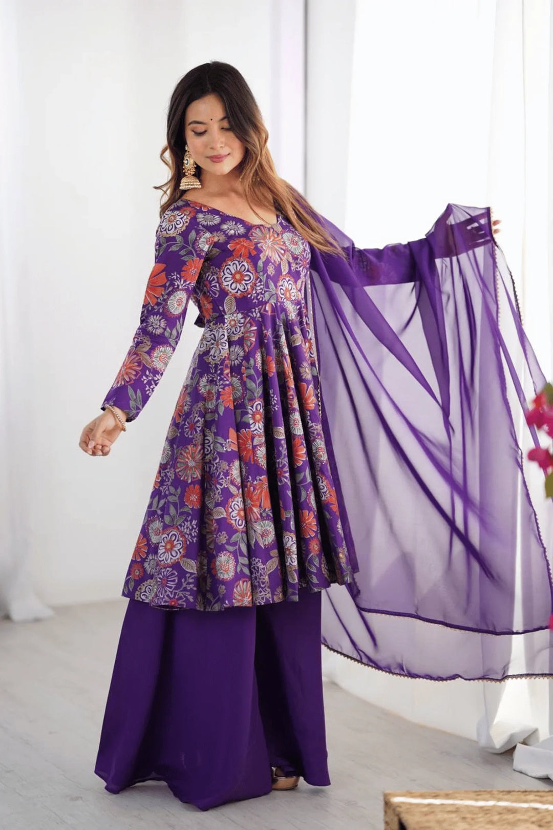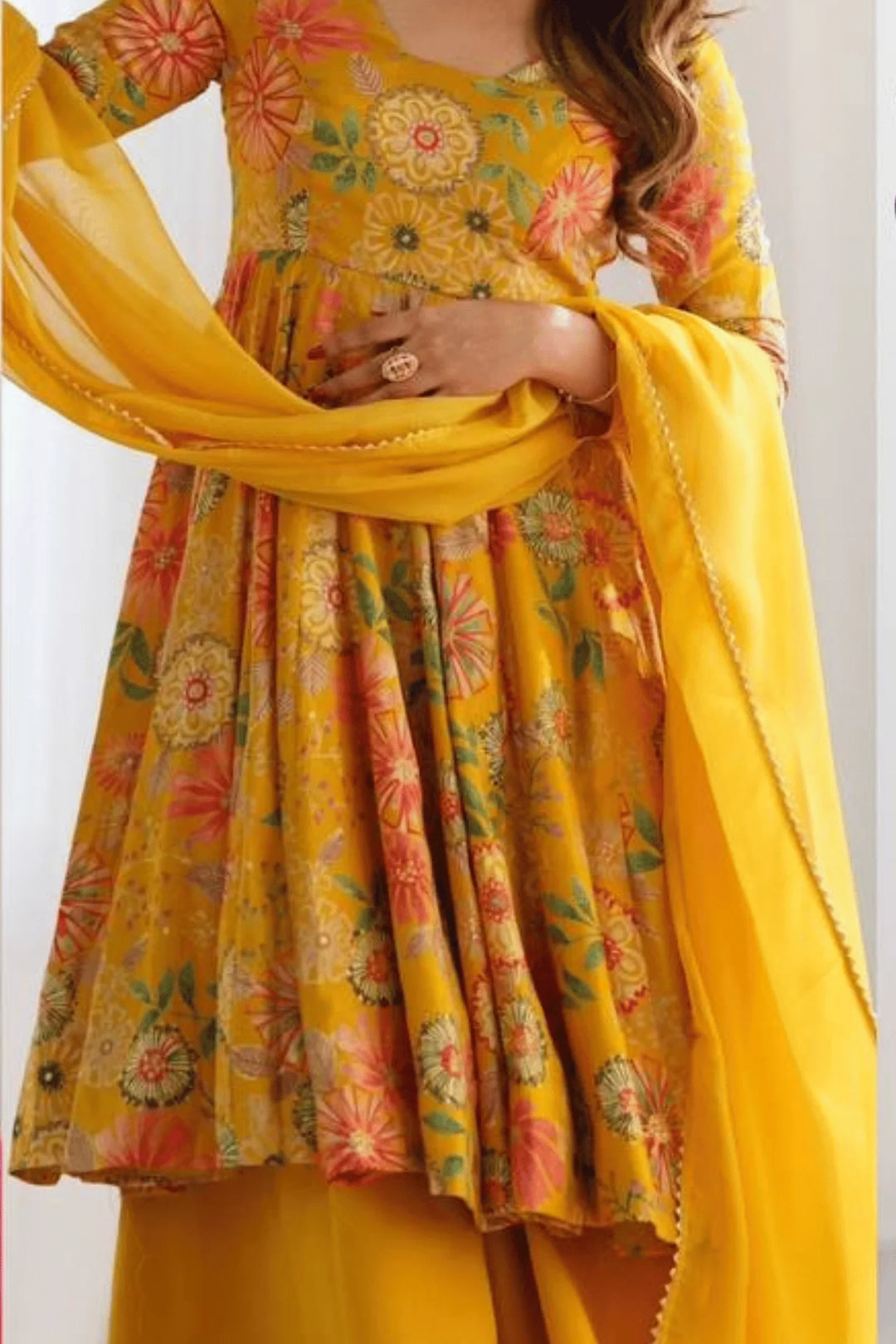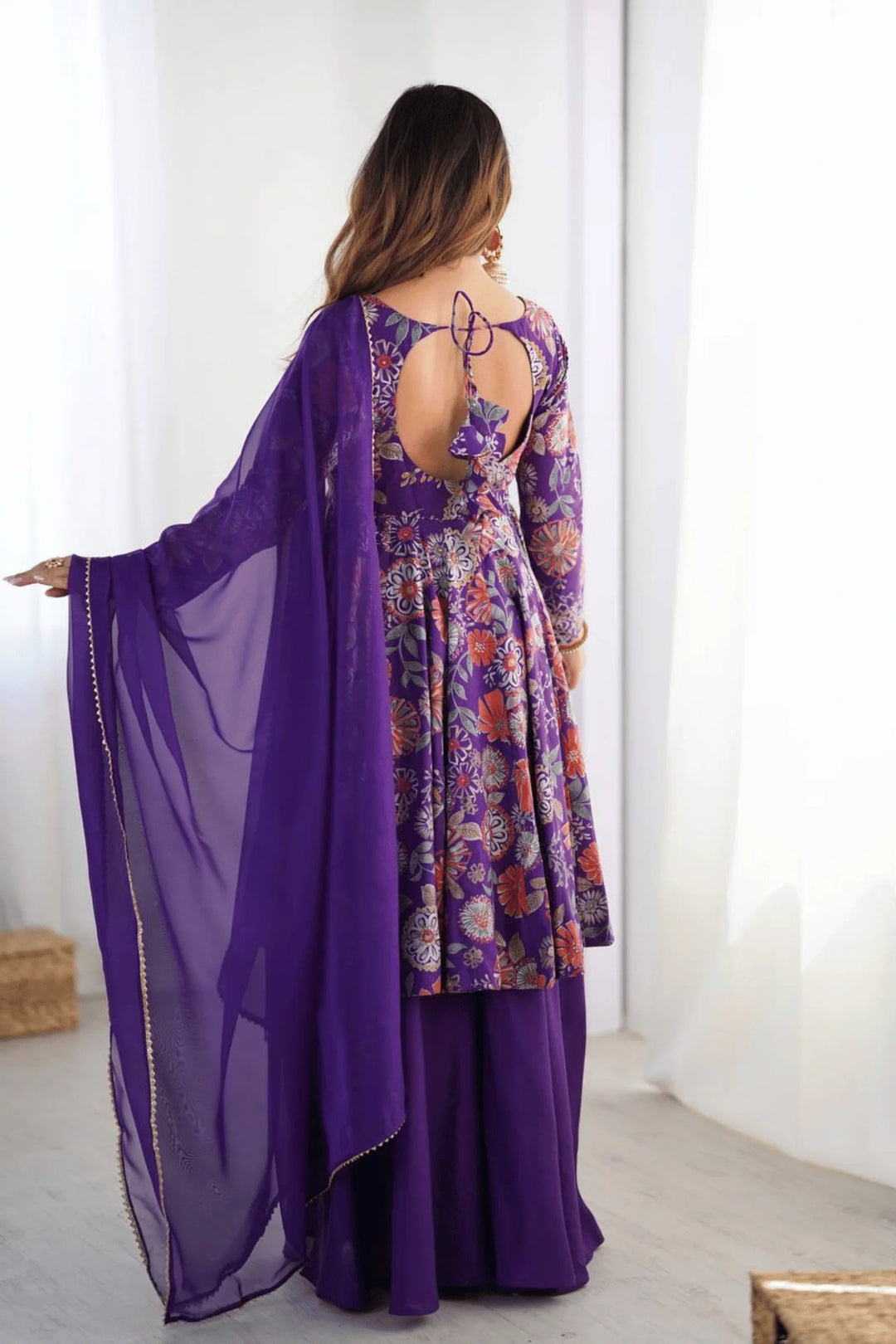 Indulge in opulence with our Sharara suit, a stunning creation from GlamWiz that harmoniously marries tradition with modern allure. Adorned with Phulkari Fusion, this ensemble radiates sophistication, making it a perfect choice for both festive occasions and special gatherings where you want to make a statement with your style.