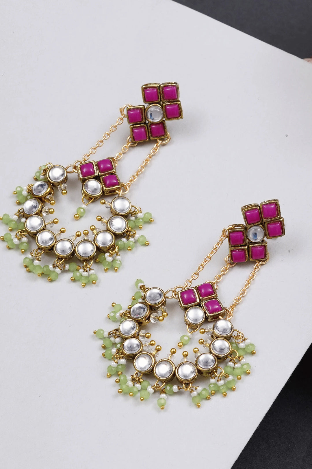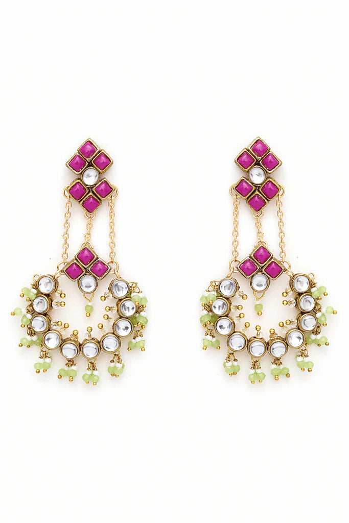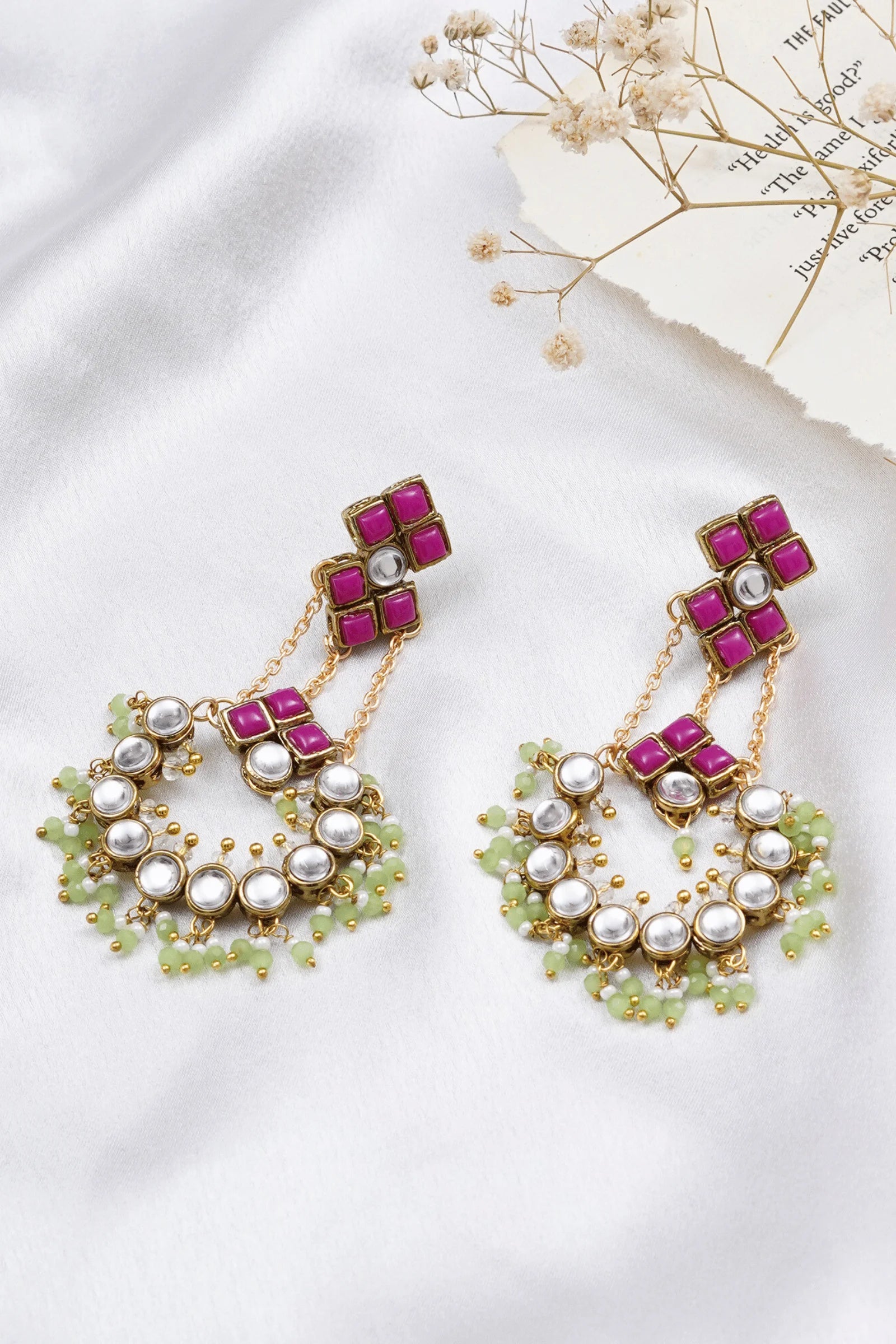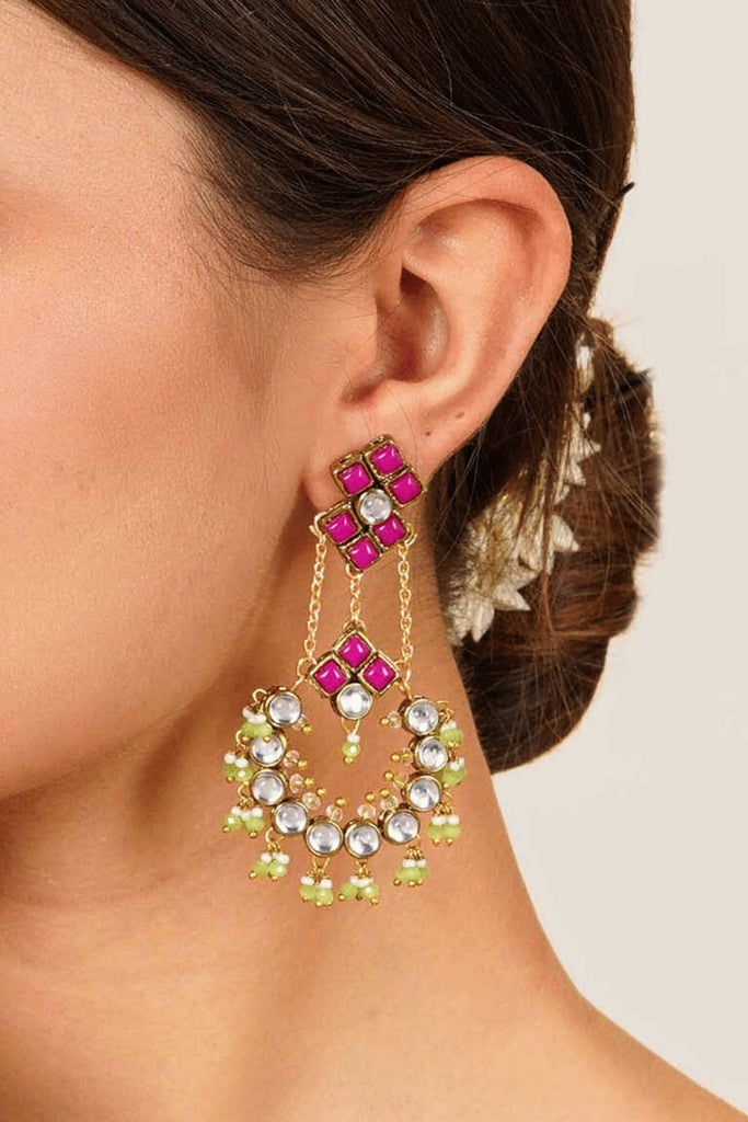 Rani Glow | Pink & Lime Kundan Chandbalis
