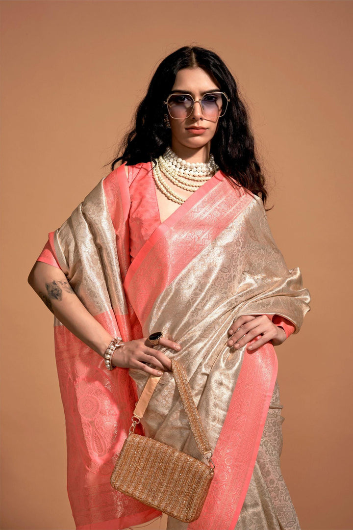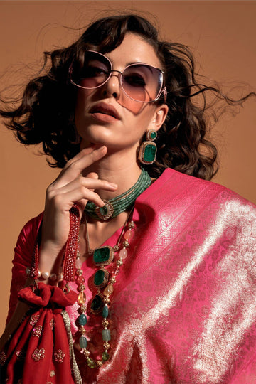 Experience the timeless elegance of Kanjivaram silk with our Glamwiz Ready-to-Wear Kanjeepuram Silk Saree. Crafted with exquisite craftsmanship and luxurious silk, this saree is a blend of tradition and modernity. Its rich, vibrant colors and intricate designs make it a perfect choice for any special occasion.
