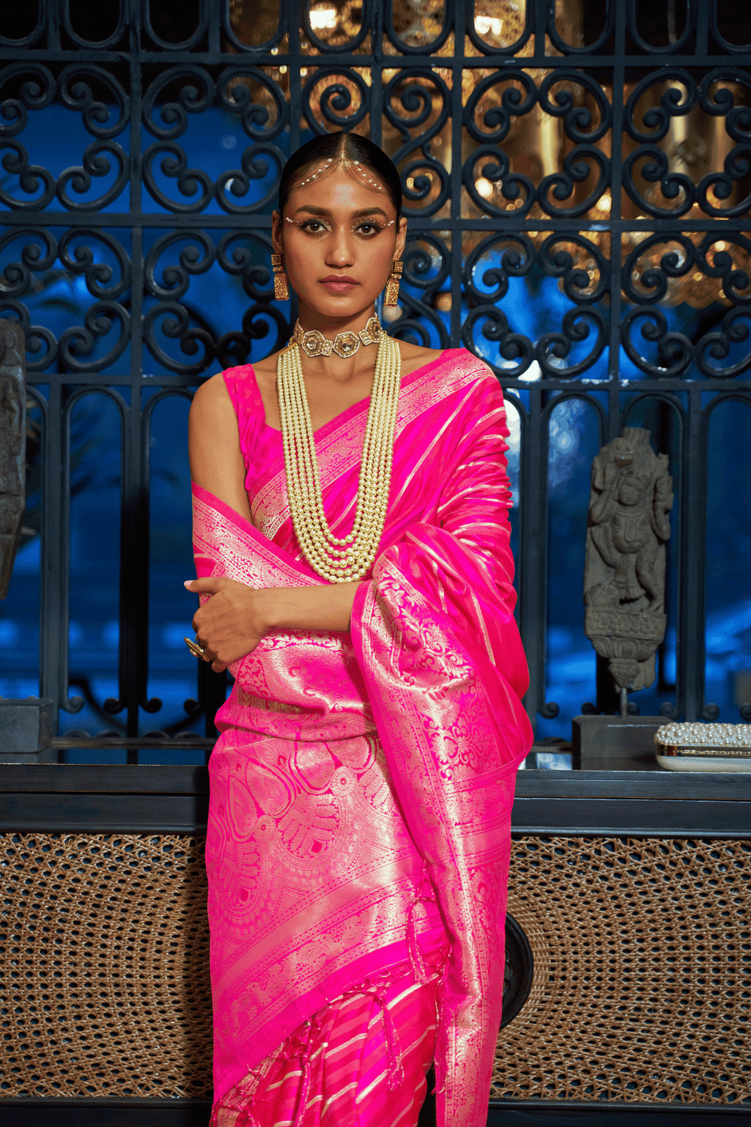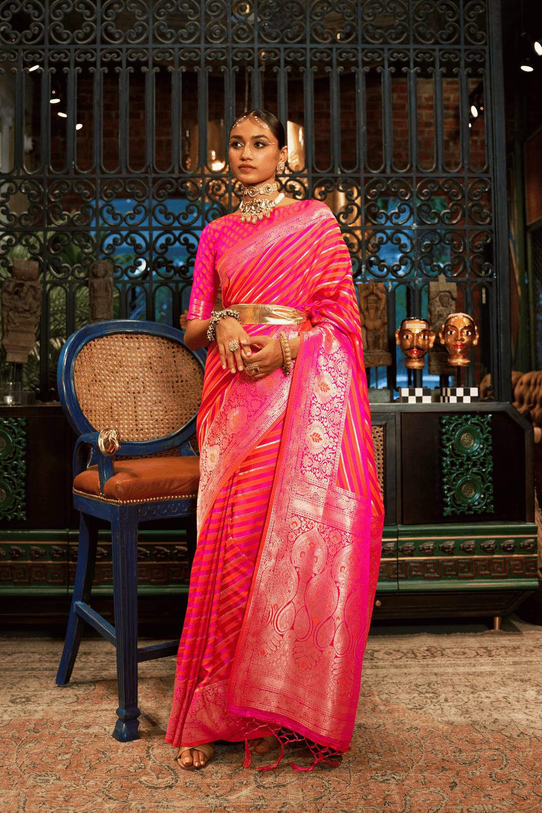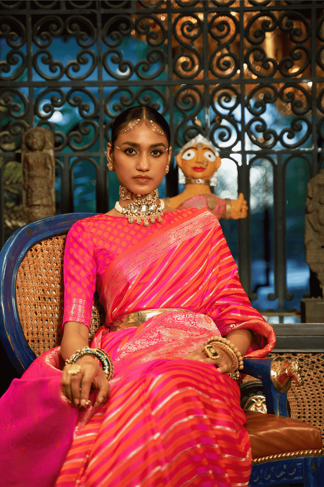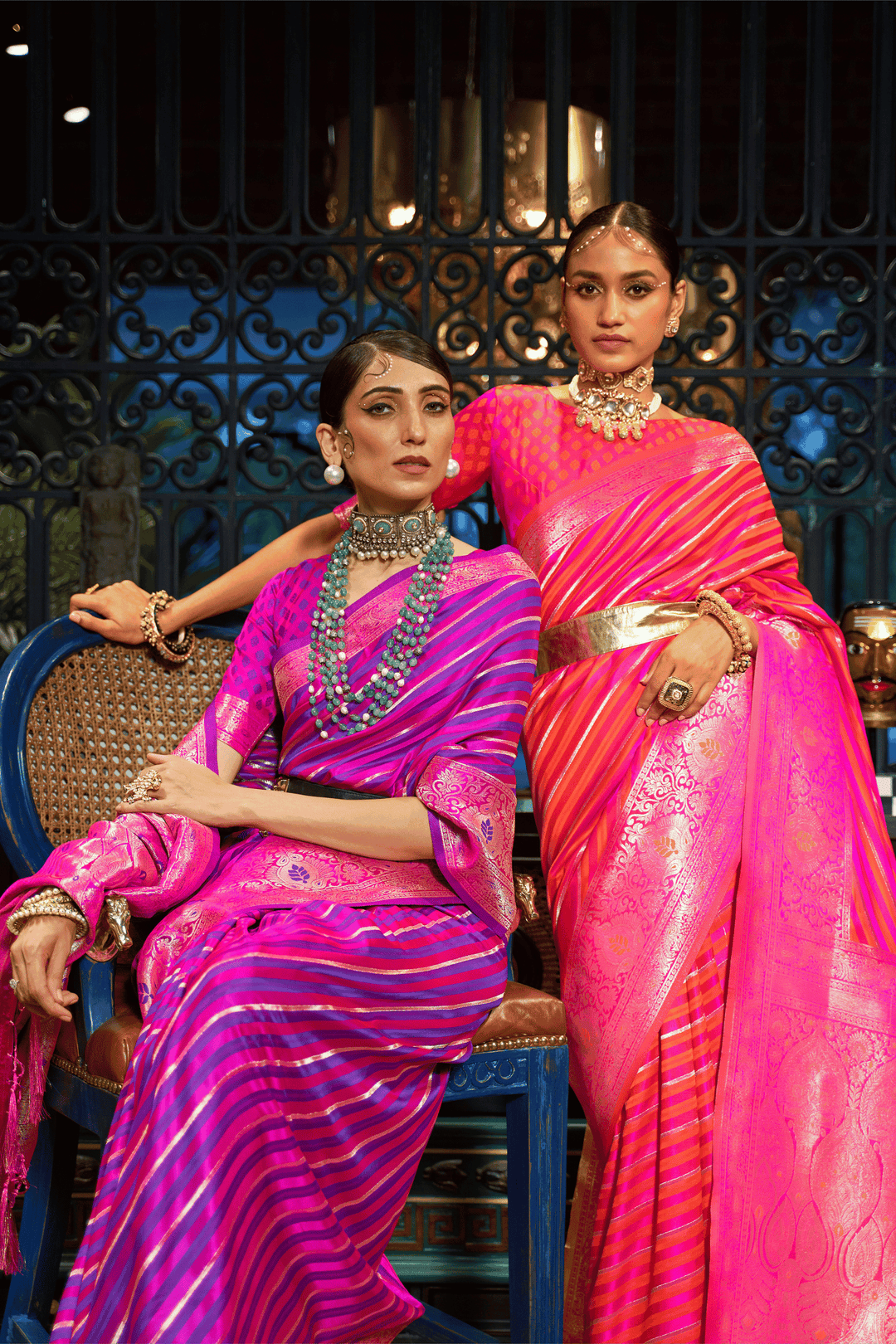 Glamwiz 'Rajagharana Collection' proudly showcases a stunning array of silk sarees, each a masterpiece representing the rich textile heritage of various states in India. From the intricate Banarasis to the vibrant Kanjeevarams, this collection epitomizes the diversity and craftsmanship of Indian silk weaving.