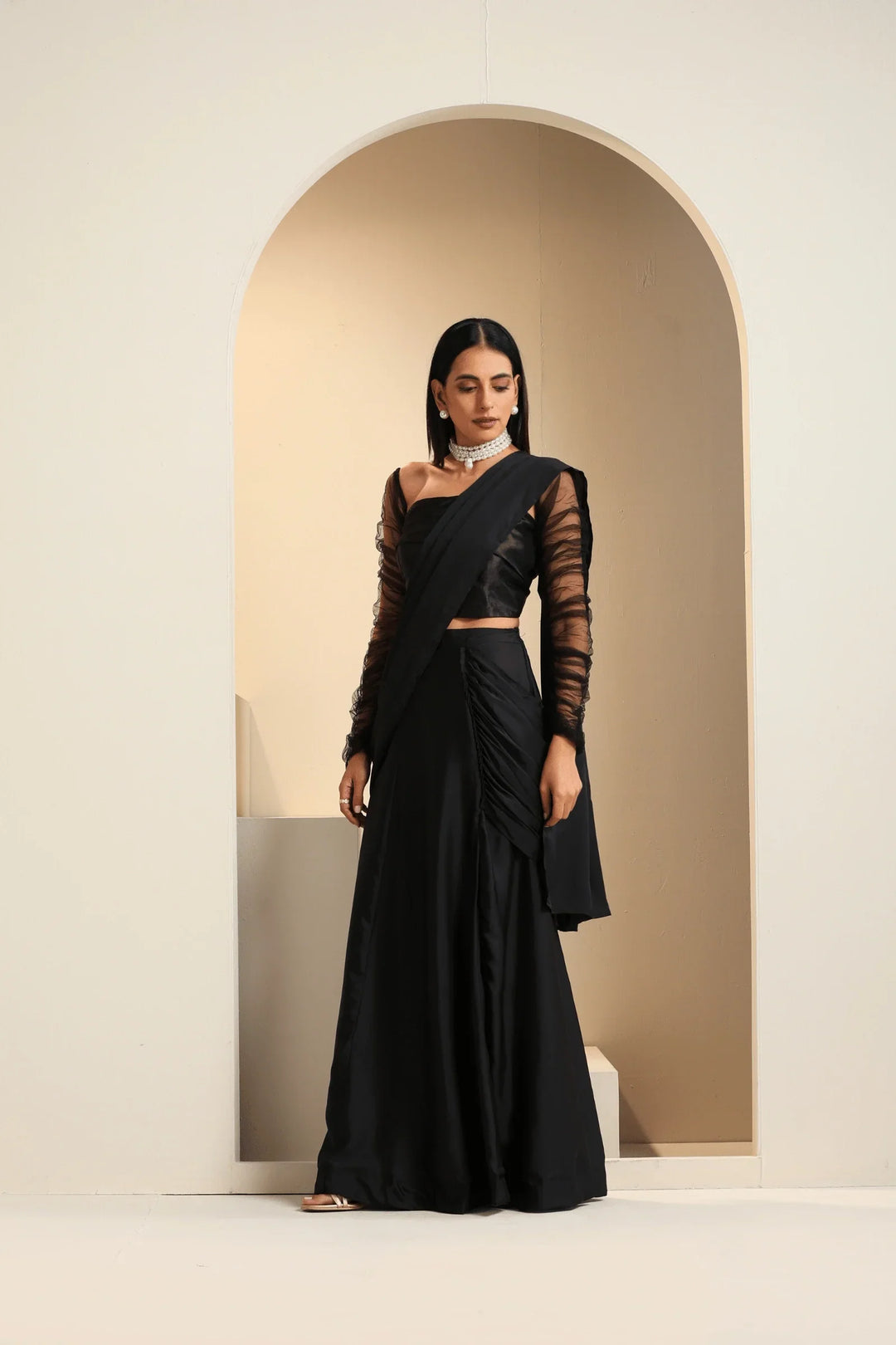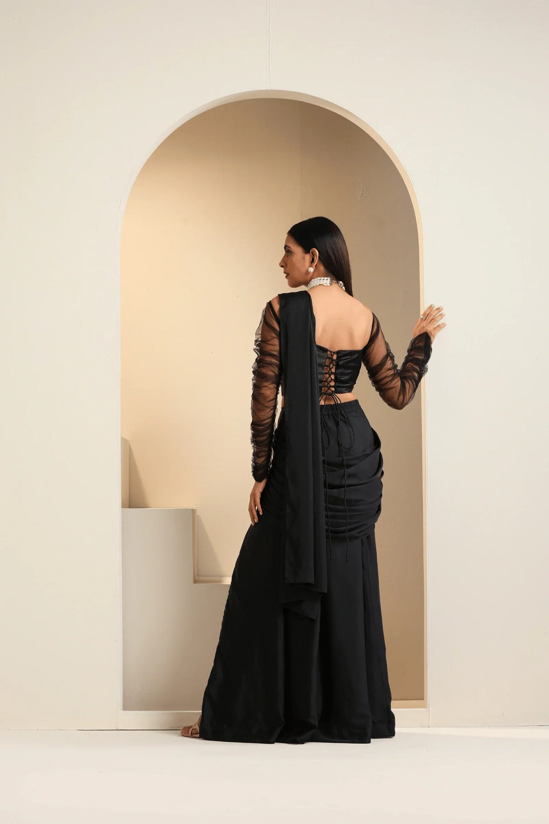 Sanskari Rebooted— Ready to Wear Black Slit Saree Gown