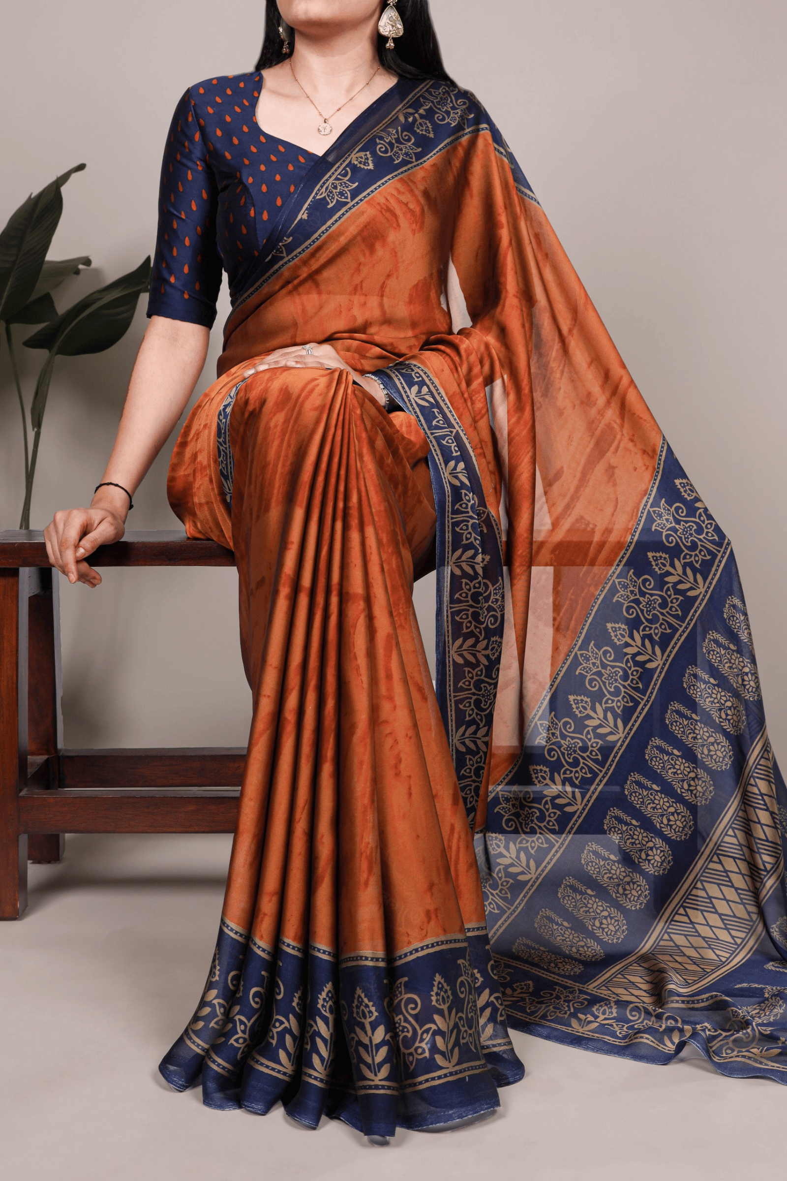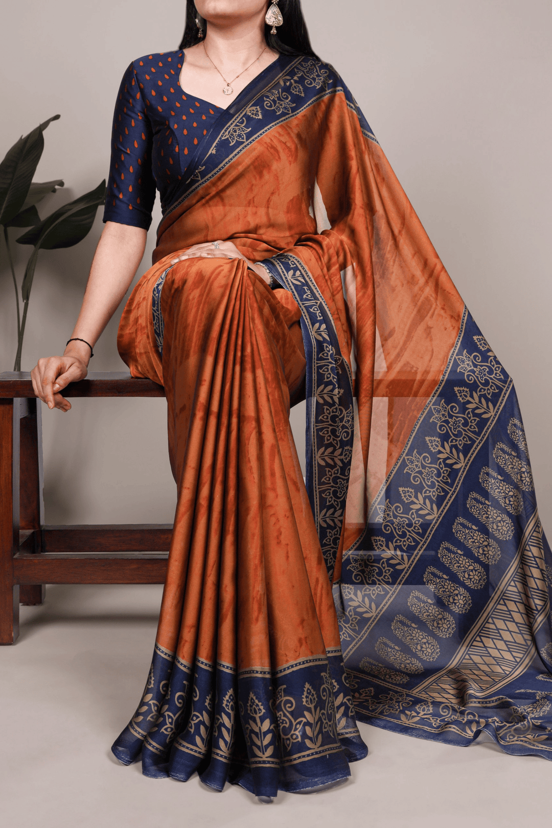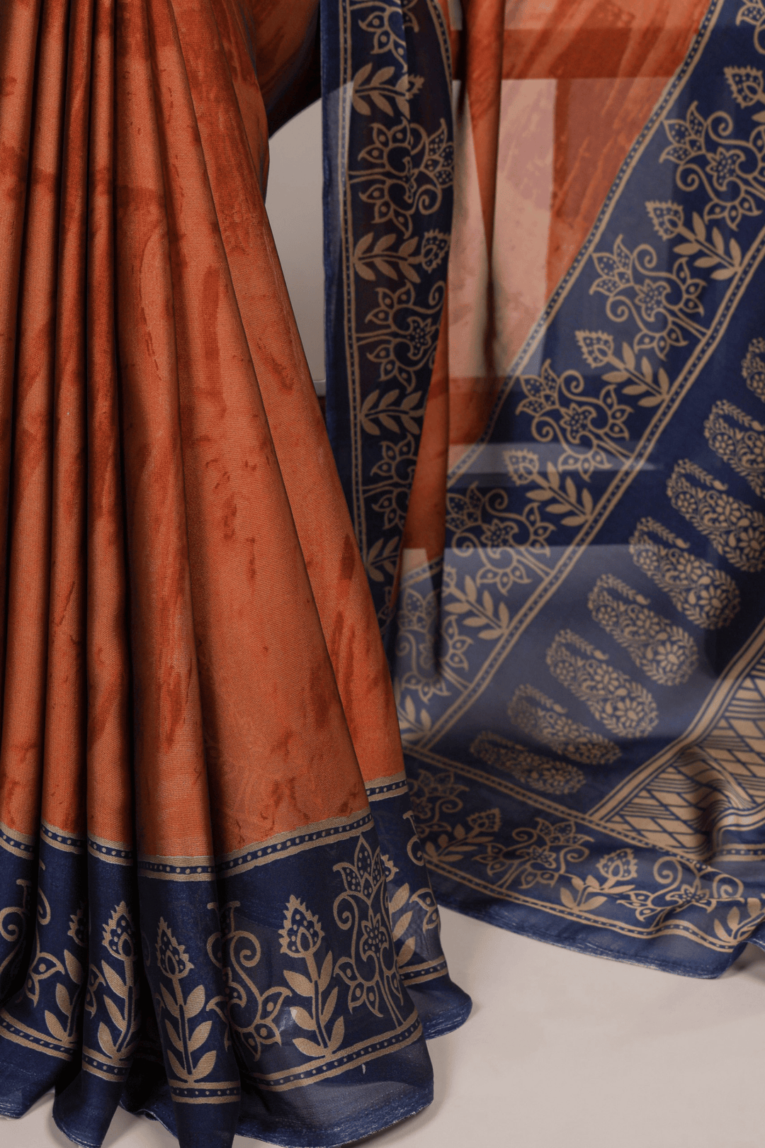 Lightweight yet graceful, the silk texture offers a soft sheen and effortless flow, making it perfect for festive gatherings, cultural celebrations, and elegant everyday wear. The printed design adds depth and character, while the refined border detailing enhances its classic appeal.