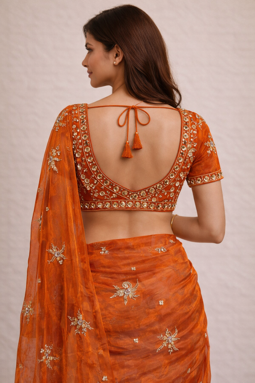 Length:- 5.5 meters & 0.8 Unstitched self fabric Blouse to style the blouse as you please!