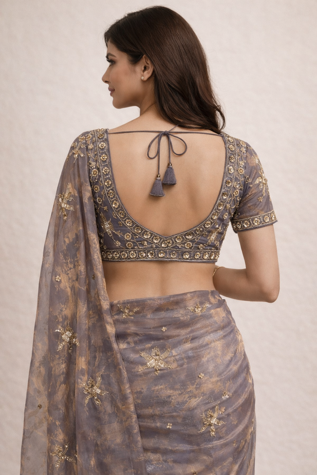 Warm Grey | Saree with Stitched Blouse- Ready to Wear
